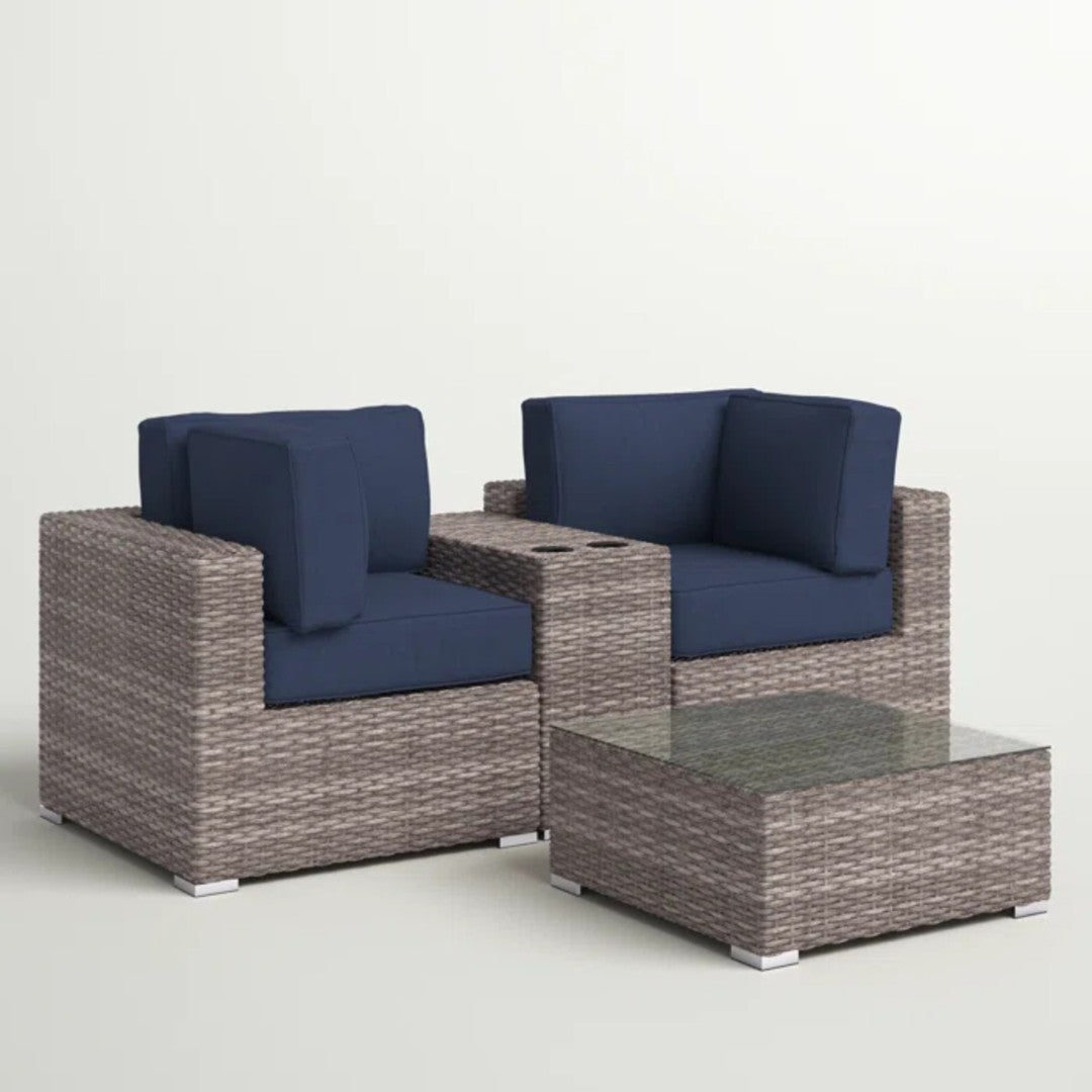 - Complete 4-Piece Set: Includes loveseat with cupholder, coffee table, and 6 cushions