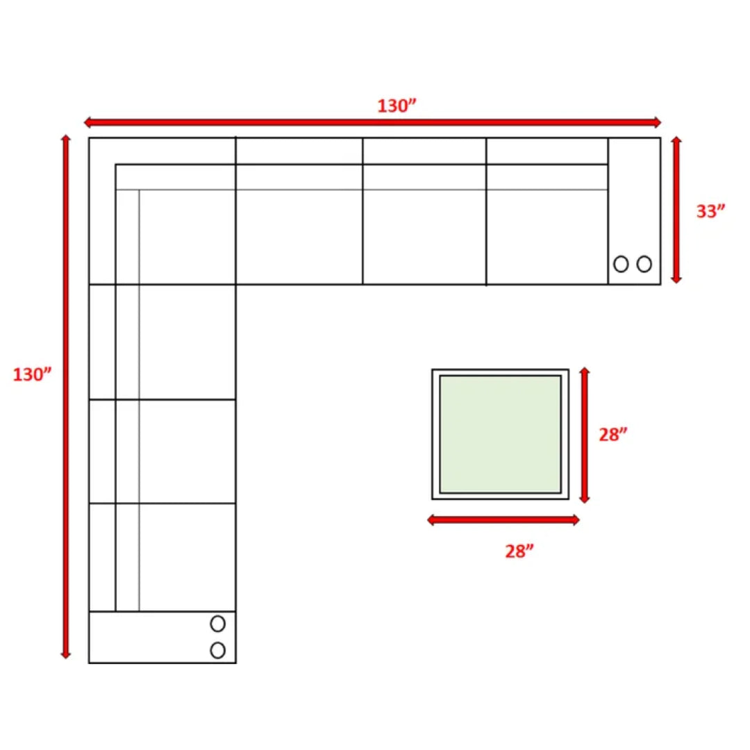 - Sofa / Sectional: 26" H x 130" W x 130" D