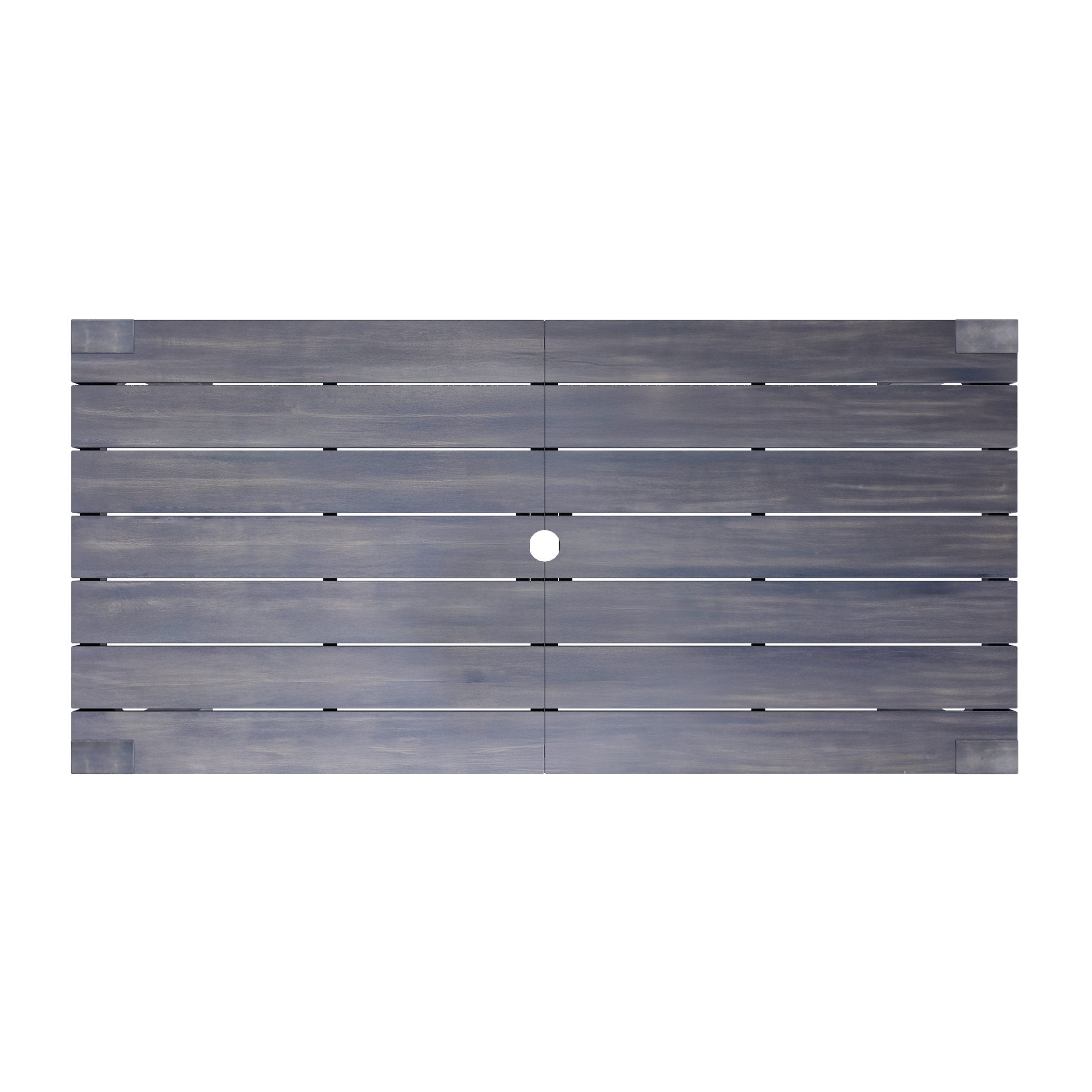 Bring stylish comfort and durable performance to your outdoor gatherings with this 7-piece patio dining set designed for everyday backyard living. Crafted from solid acacia wood with weather-resistant finishes and removable, machine‑washable cushions, this set delivers supportive seating for six and a large, slatted tabletop built to shed water and accommodate a shade umbrella — perfect for BBQs, poolside meals, and relaxed weekends outdoors.
