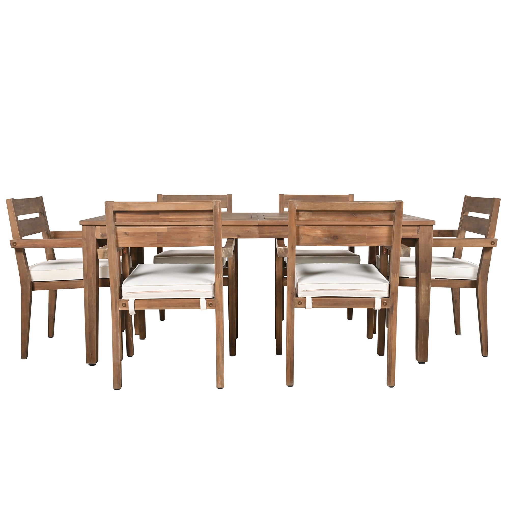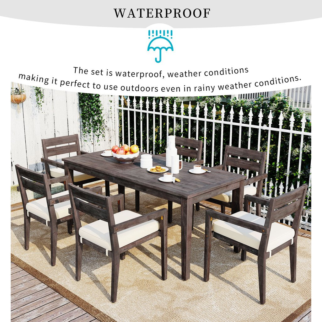 - [Wide Range Of Applications] Made of waterproof, rust-proof and UV-proof Acacia wood, this dining set is a great addition to your patio, balcony or backyard.