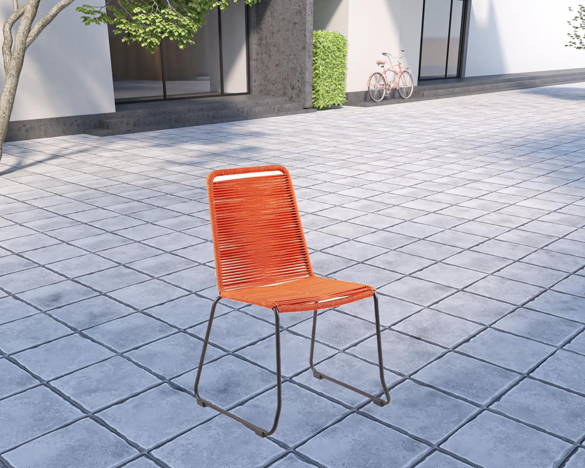 - Steel frame chairs in tangerine upholstery.