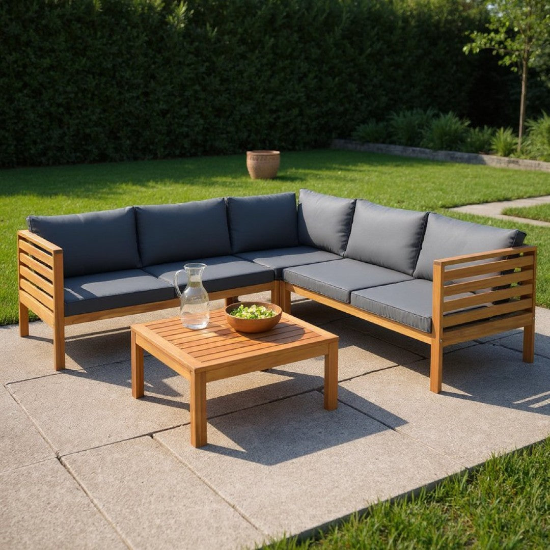 Refresh your outdoor living space with this elegant four-piece seating group that blends solid wood craftsmanship with comfortable upholstered cushions. Thoughtfully designed for relaxation and entertaining, the set combines durable acacia construction, weather-resistant finishes, and easy-care cushions to create an inviting patio, deck, or porch arrangement that looks great season after season.