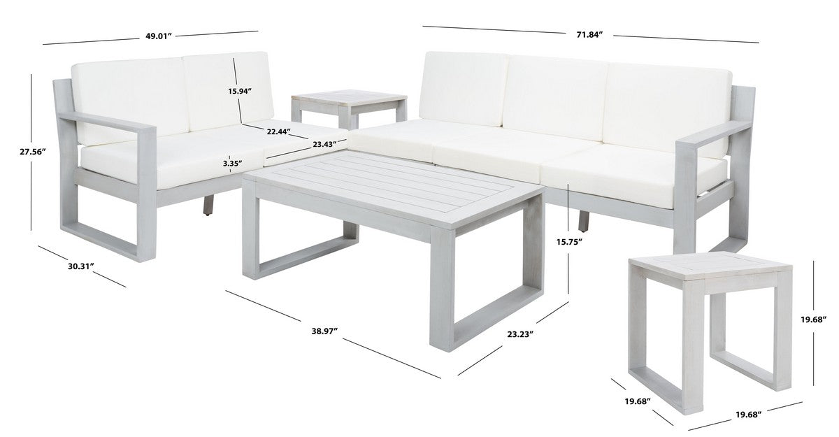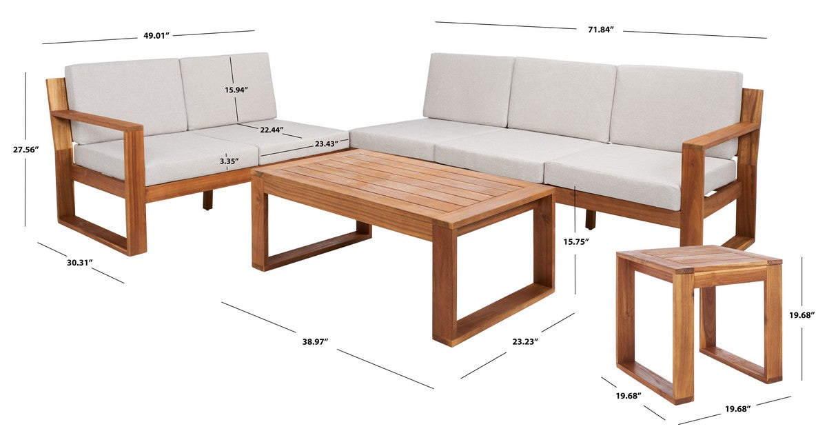 - Full Dimensions [W / D / H]: LEFT BENCH 2 SEATER: 49.01" x 30.31" x 27.56" RIGHT BENCH 2 SEATER: 49.01" x 30.31" x 27.56" BENCH 1 SEATER: 22.83" x 30.31" x 27.56" RECT TABLE: 38.97" x 23.23" x 15.75" SIDE TABLE: 19.68" x 19.68" x 19.68"