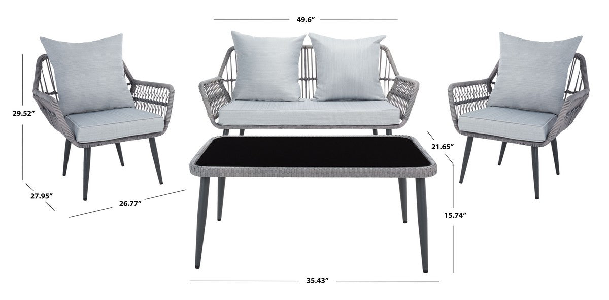 - Full Dimensions [W / D / H]: SEATER: 49.6" x 27.95" x 29.52" CHAIR: 26.77" x 27.95" x 29.52" TABLE: 35.43" x 21.65" x 15.74"