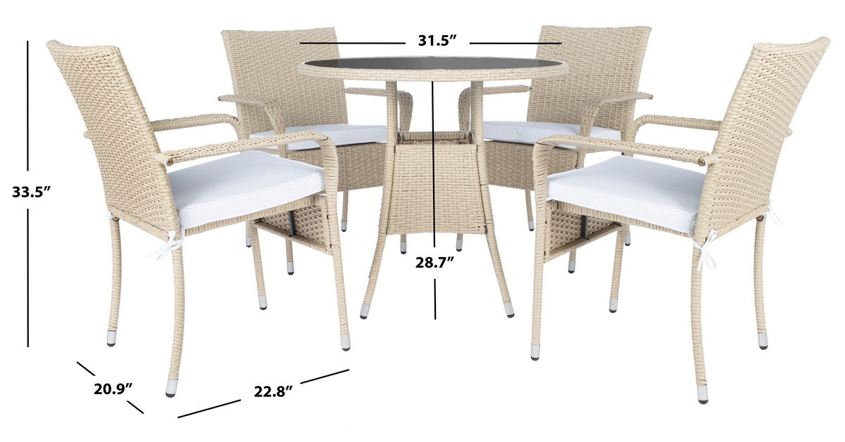 - Full Dimensions [W / D / H]: TABLE: 31.5" x 31.5" x 28.7" CHAIR: 20.9" x 22.8" x 33.5"