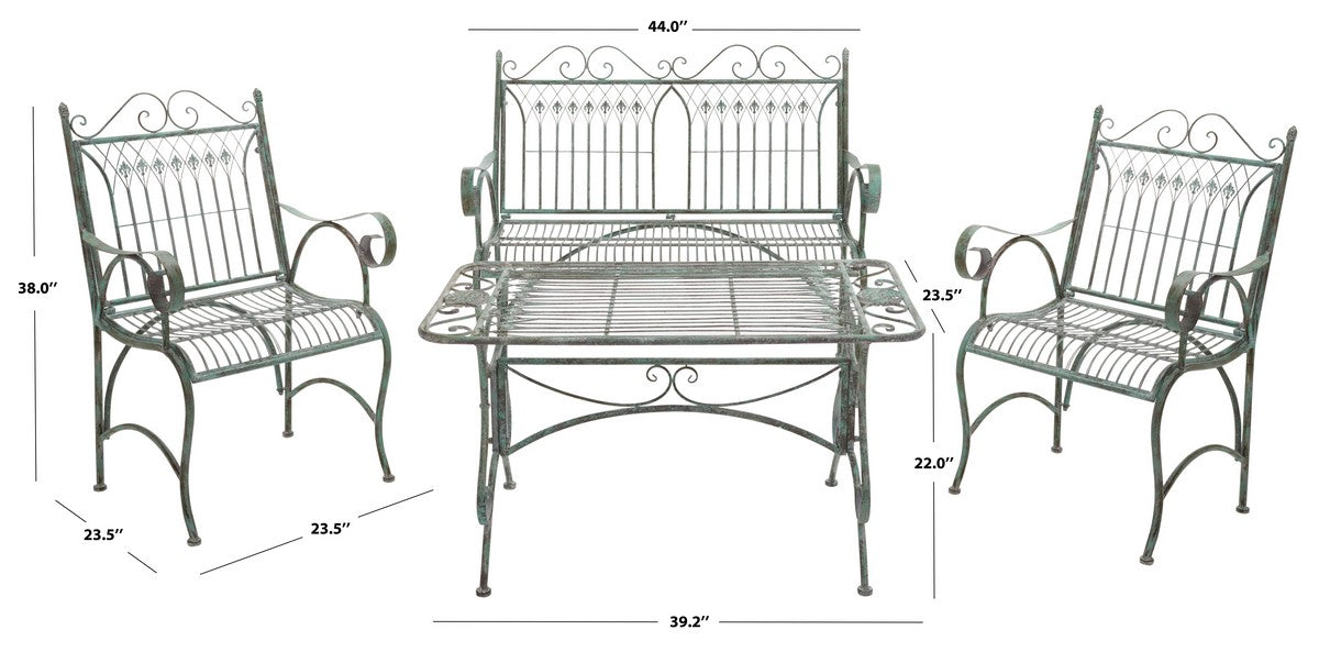 - Full Dimensions [W / D / H]: TABLE: 39.2" x 23.5" x 22 BENCH: 44" x 23.5" x 38" CHAIR: 23.5" x 23.5" x 38"
