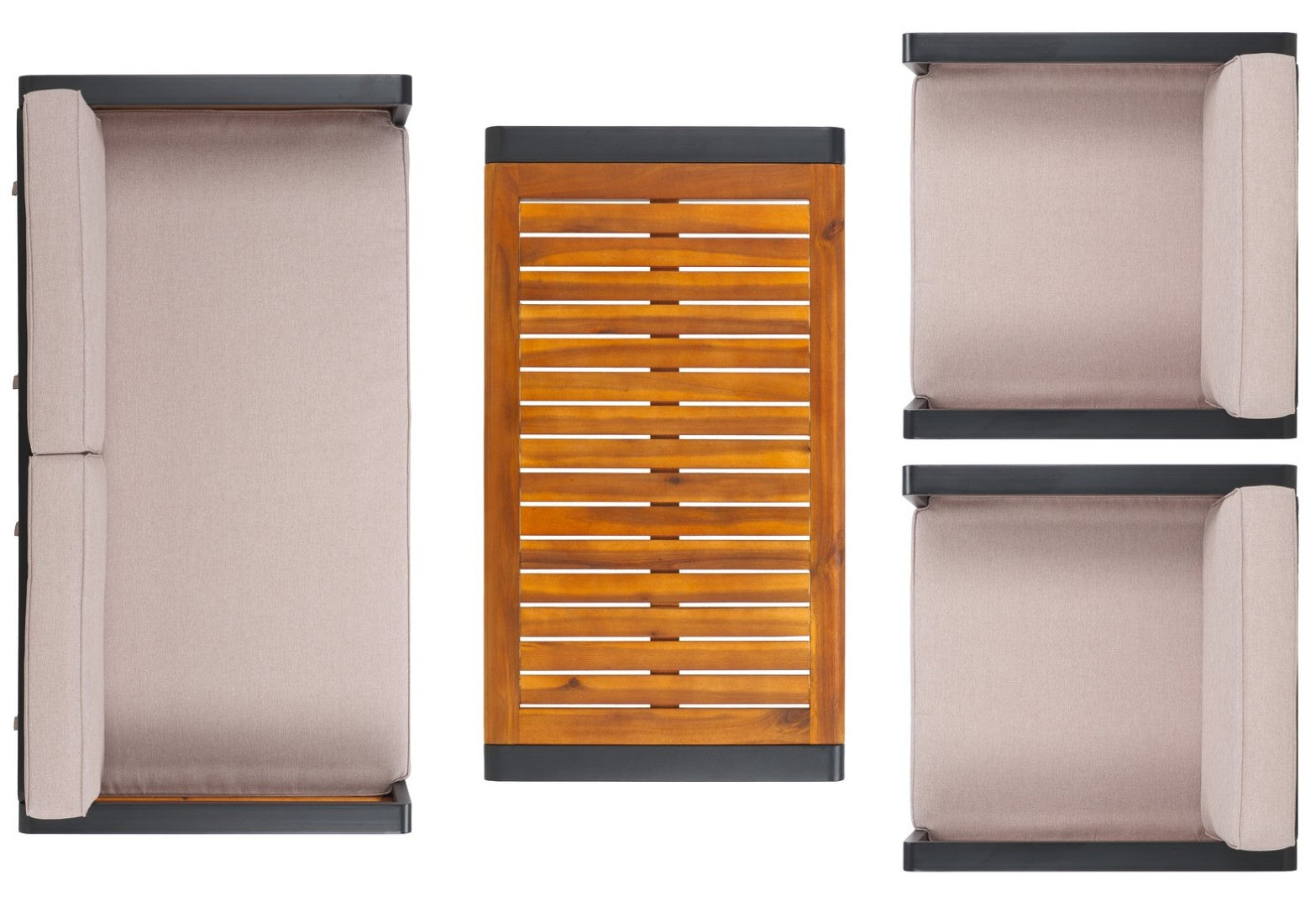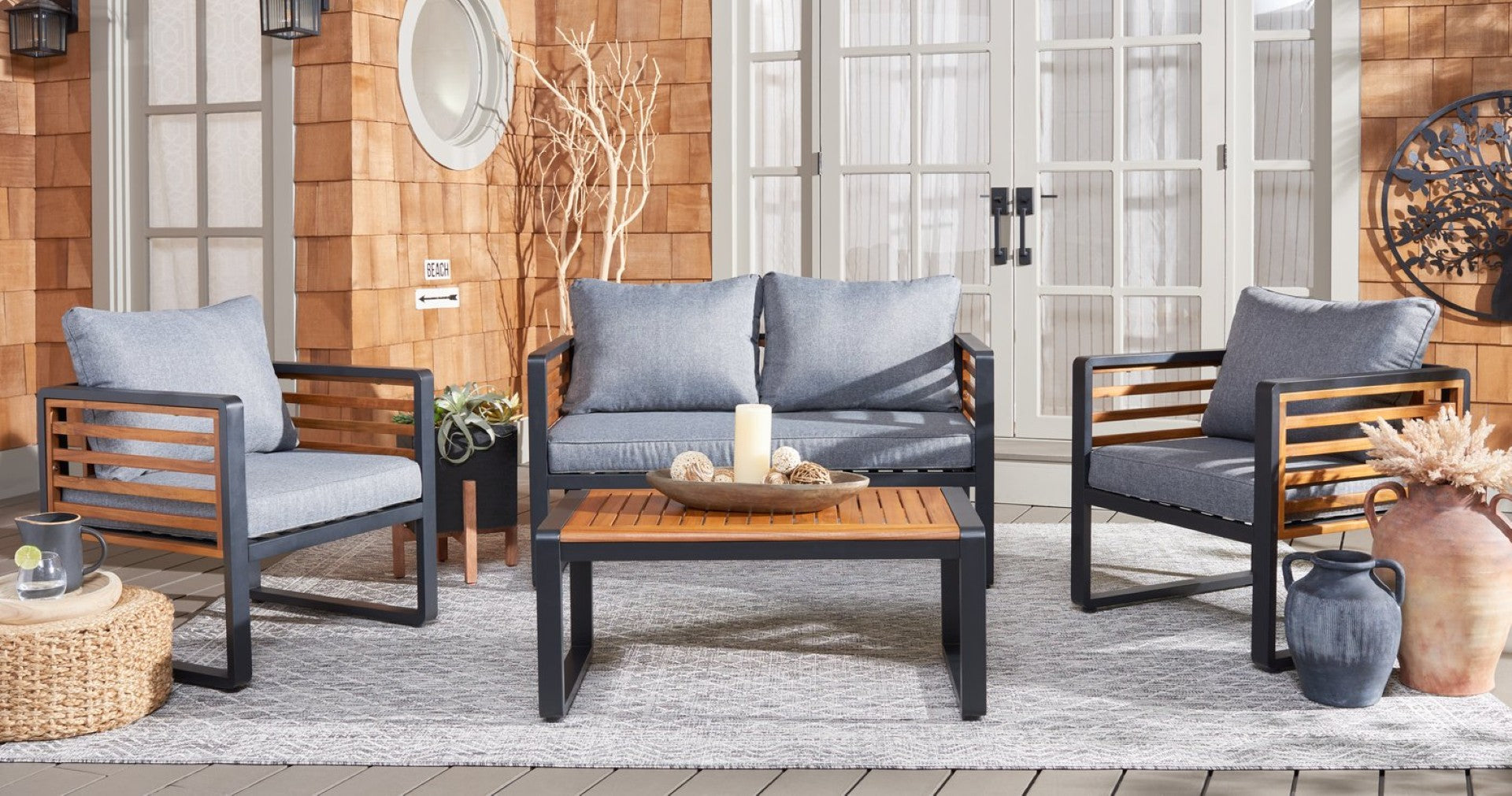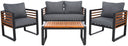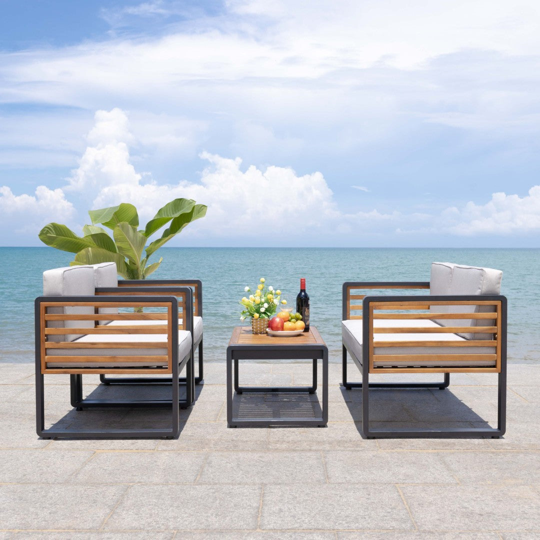 Elevate your outdoor living with a contemporary four-piece set that blends modern design and durable materials for everyday comfort and lasting style. Ideal for patios, decks, and poolside lounges, this collection combines sturdy metal frames, warm acacia wood accents, and plush foam cushions wrapped in weather-ready fabric to create a cohesive look that’s both inviting and practical.