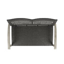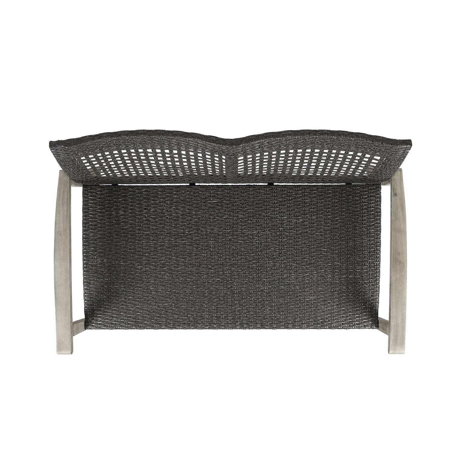 - ACACIA WOOD WITH COMPLEMENTING FINISH: This frame consists of an acacia hardwood that accents the wicker seat. This material is washed with a complementing finish and maintains a sturdy foundation for the loveseat that can withstand most weather conditions.