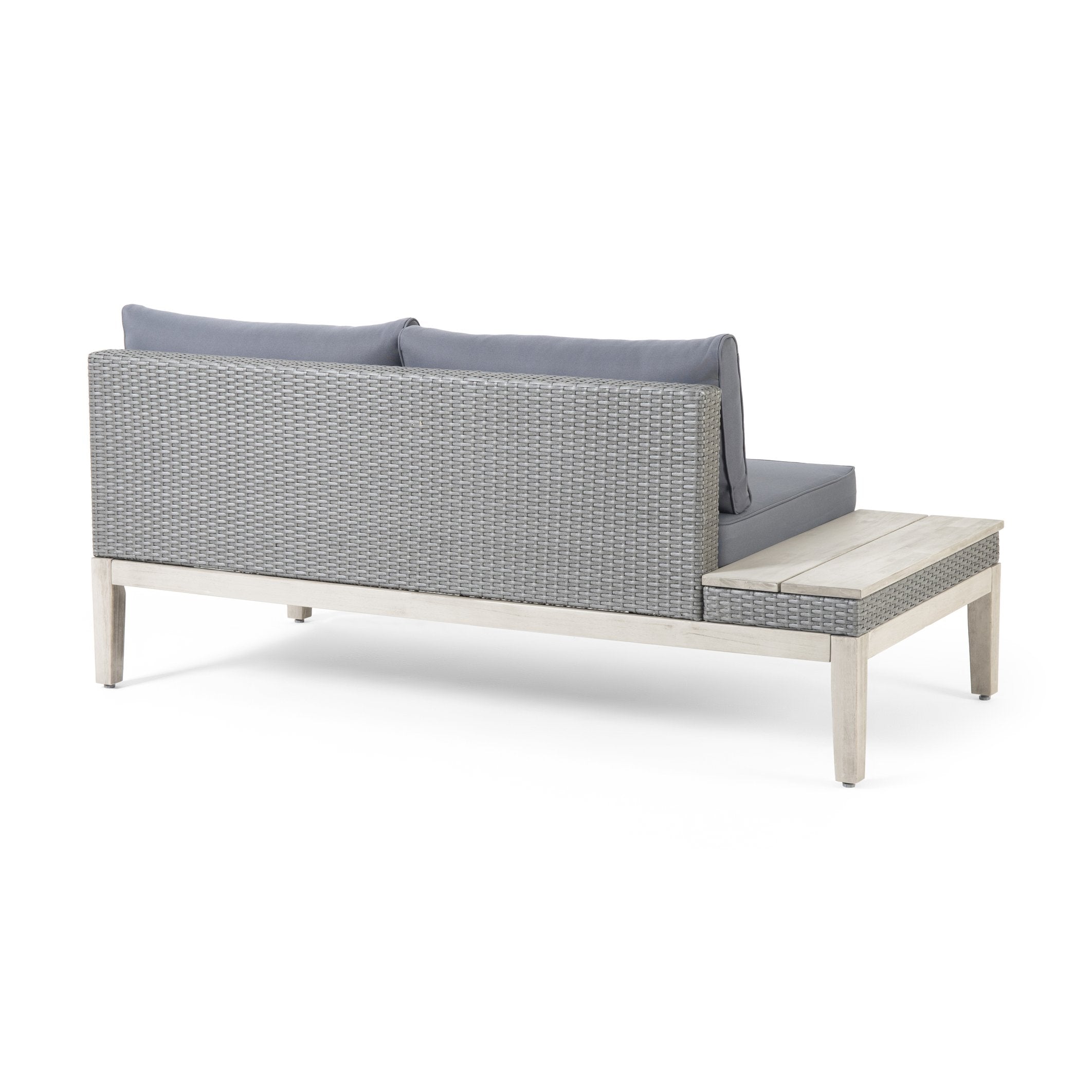 Bring casual, contemporary comfort to your outdoor living area with this Loft 2-Seater Sofa — Left Side. Crafted from durable acacia wood and weather-ready polyethylene rattan, it pairs sturdy construction with refined, handcrafted detailing. Water-resistant cushions and integrated side tables make this piece both practical and stylish, while the open slat design promotes airflow and a cohesive, modern aesthetic.