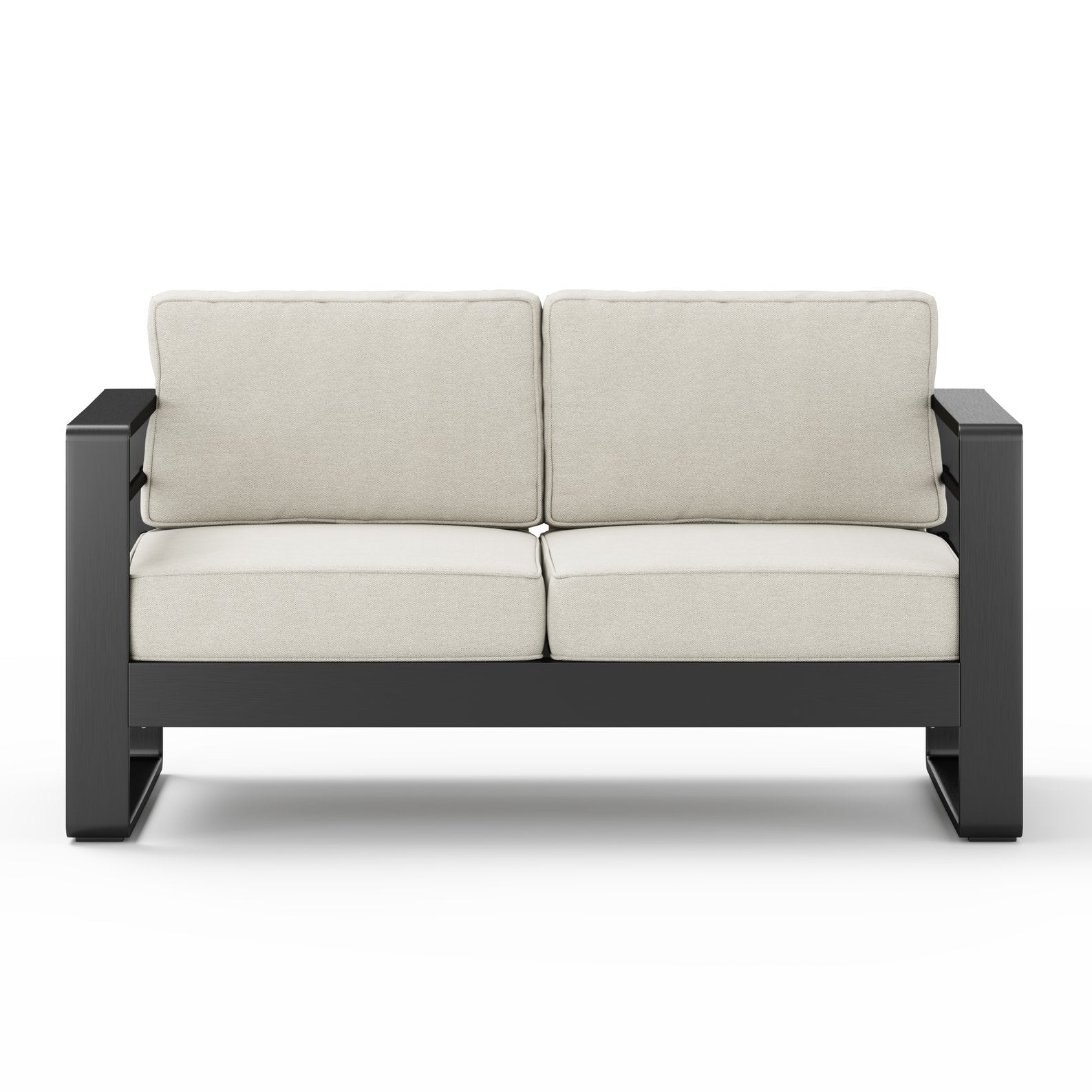 Enjoy tranquil outdoor moments in comfort and style with this elegantly designed two-seat loveseat. Finished in matte black with plush beige Olefin cushions, it blends weather-ready durability with contemporary lines—perfect for patios, garden nooks, balconies, or poolside lounges. Thoughtfully engineered for easy care and versatile placement, this loveseat provides a cozy seating solution for conversations, reading, or relaxing outdoors.