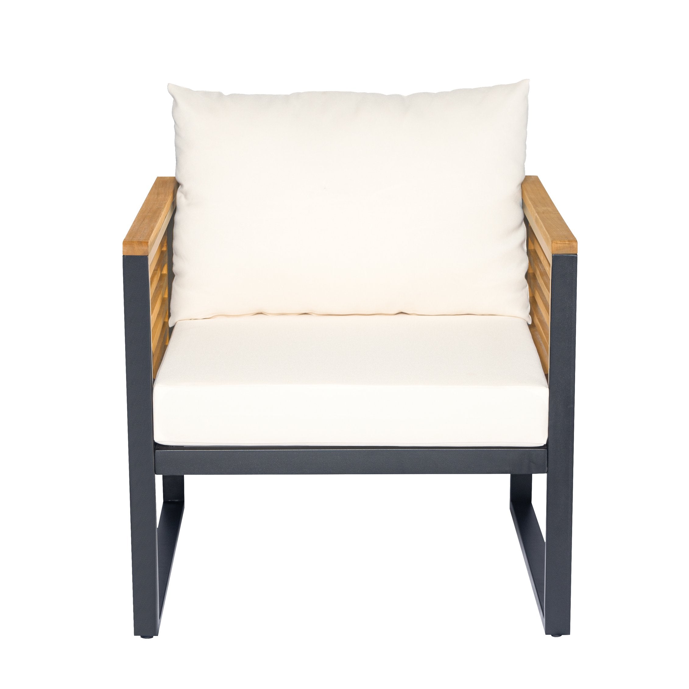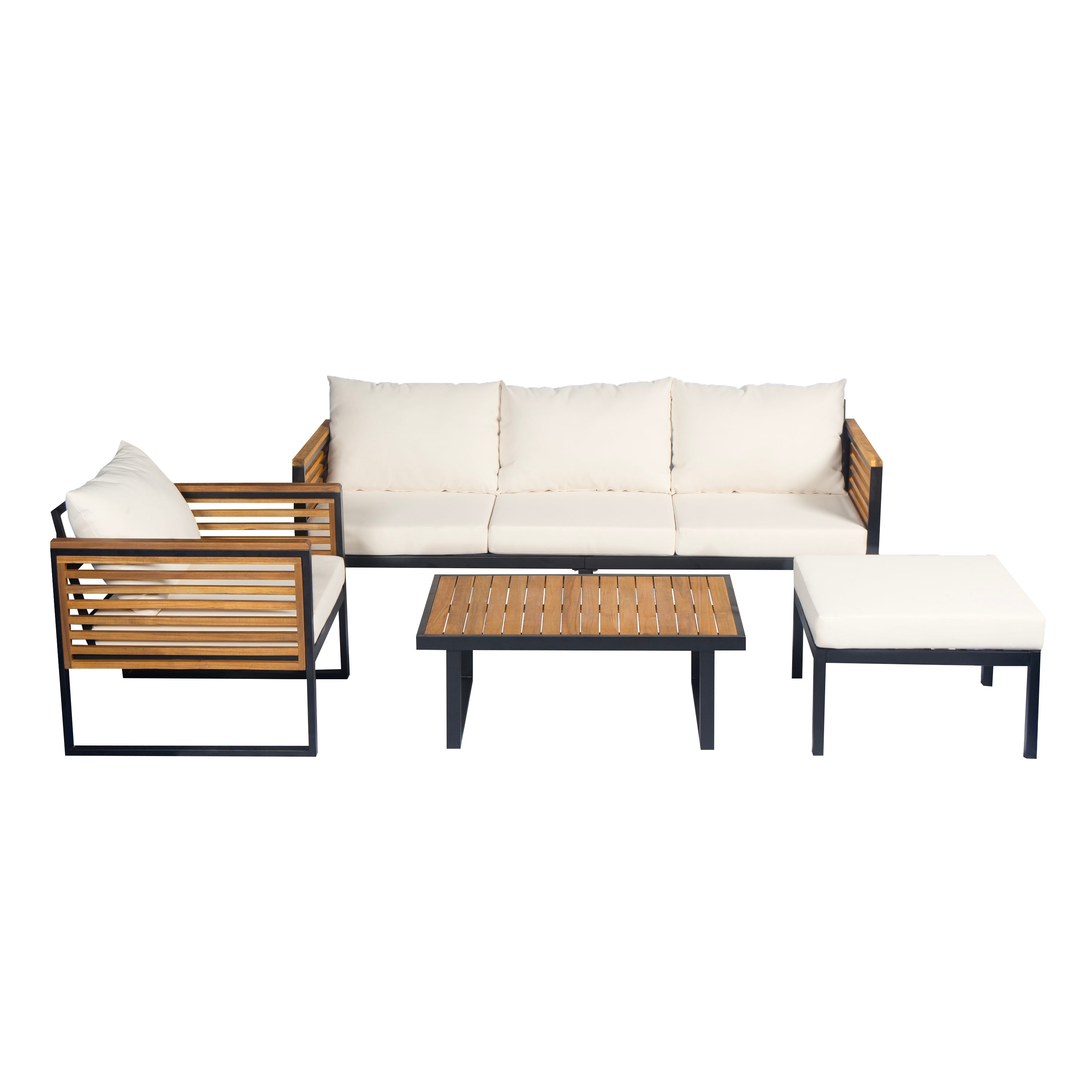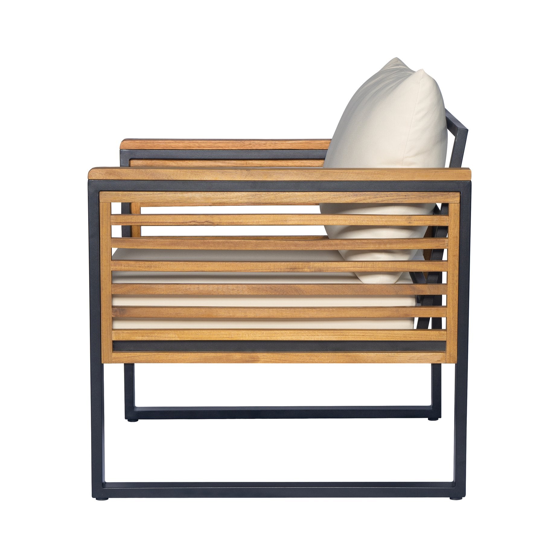 Create a comfortable, stylish outdoor seating area with this 4-piece acacia wood and metal patio set. Combining solid construction, weather-resistant materials, and plush cushioning, it’s designed to enhance patios, decks, and gardens while providing lasting comfort and modern appeal.