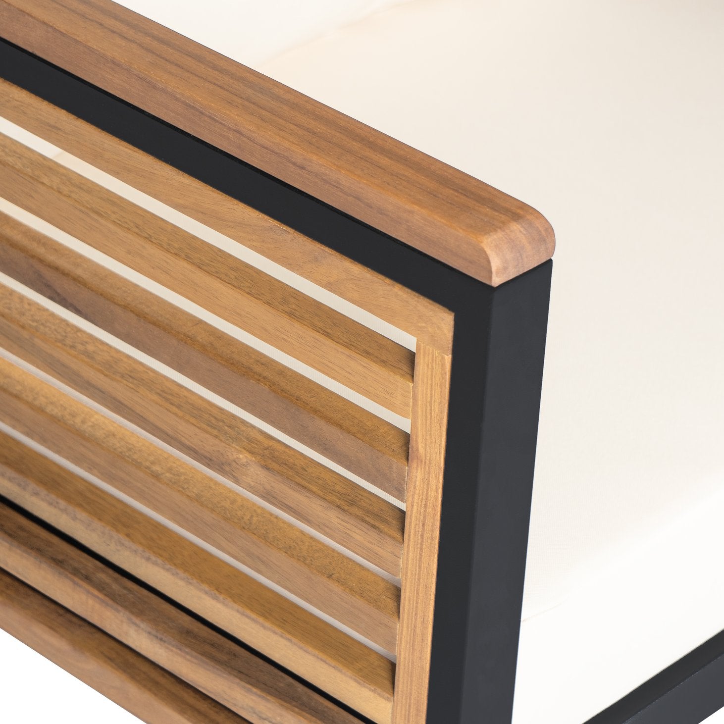- Style: Industrial-inspired aesthetic with embedded wooden armrests and a teak + black color palette to complement contemporary outdoor décor.