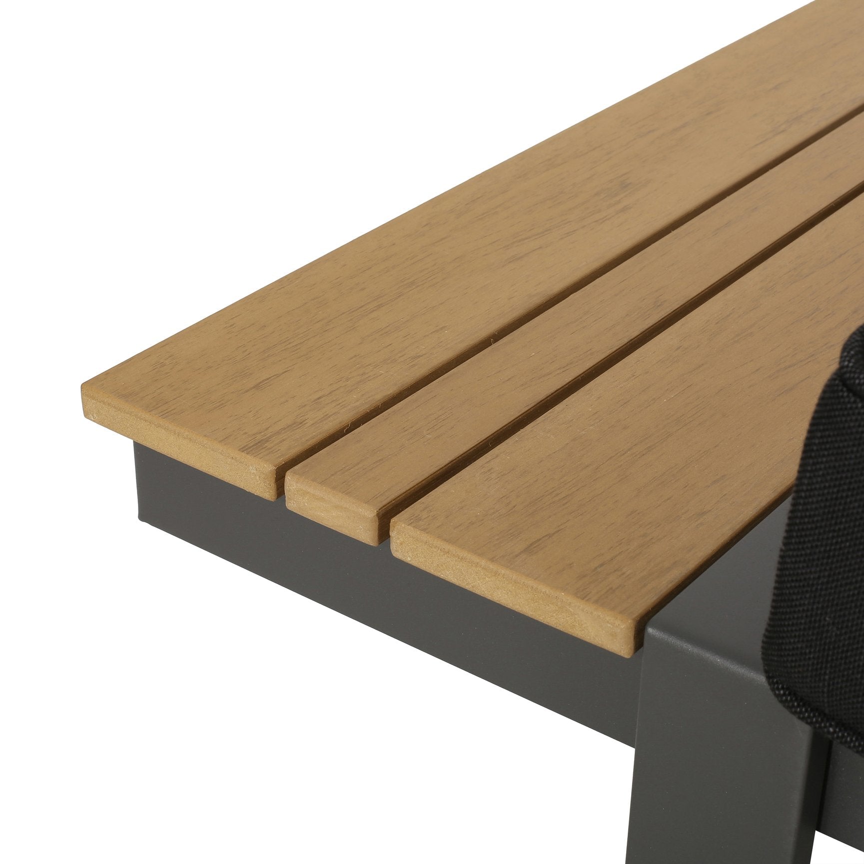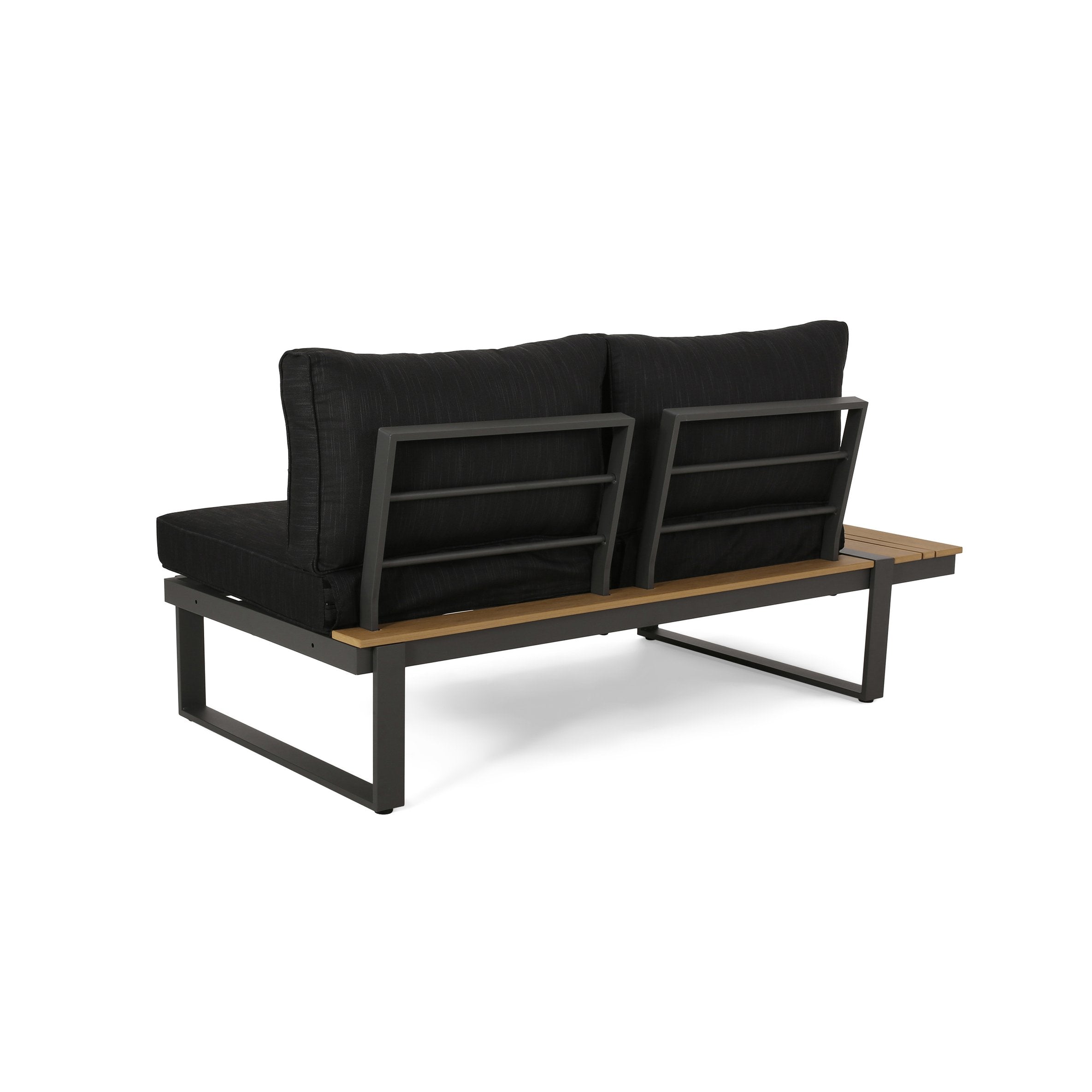 - FAUX WOOD ACCENTS: This set features built-in side tables, offering extra space to set down drinks or other items. Made from a wood alternative, these accents are engineered from recyclable materials to give the appearance of a beautiful wood look without the high upkeep.