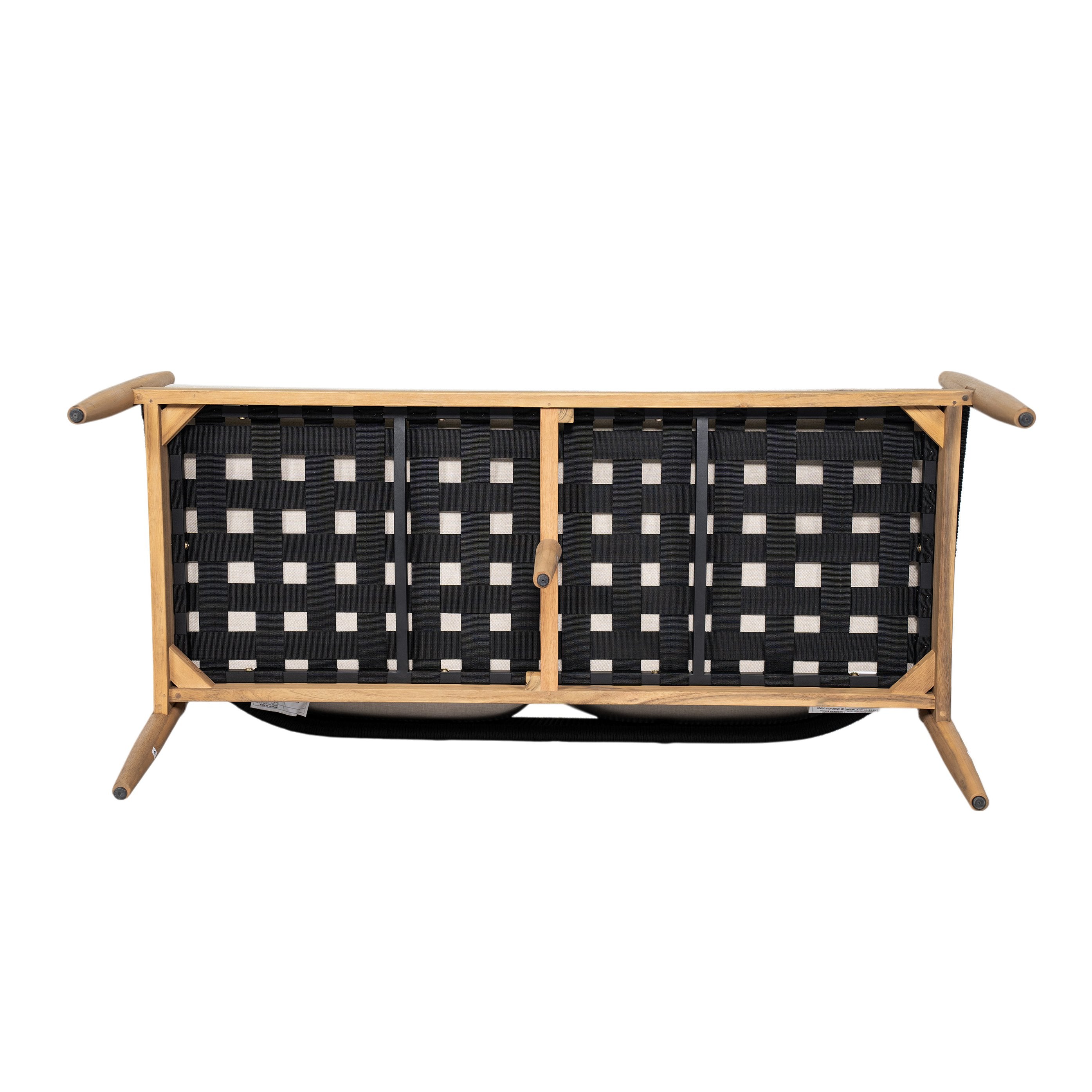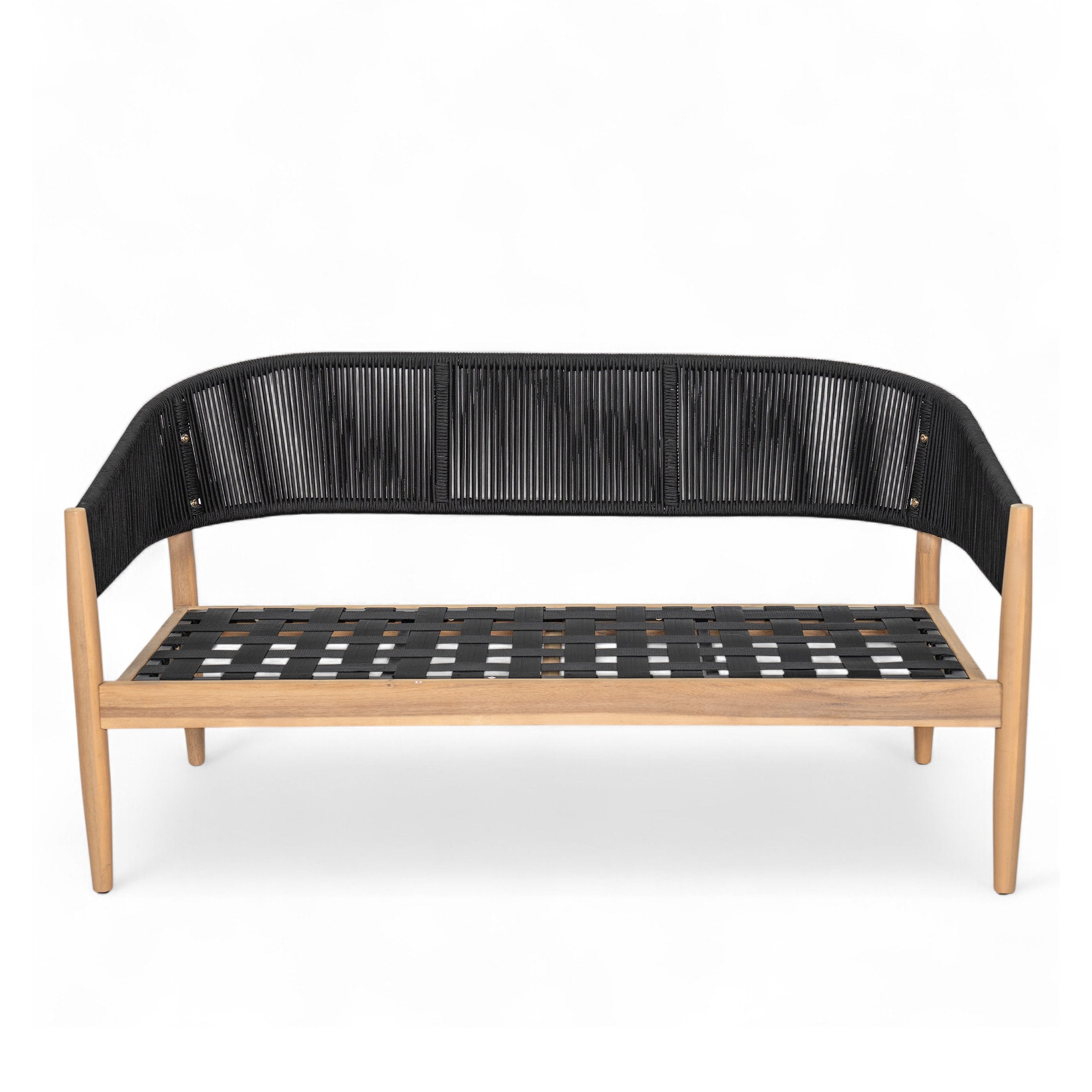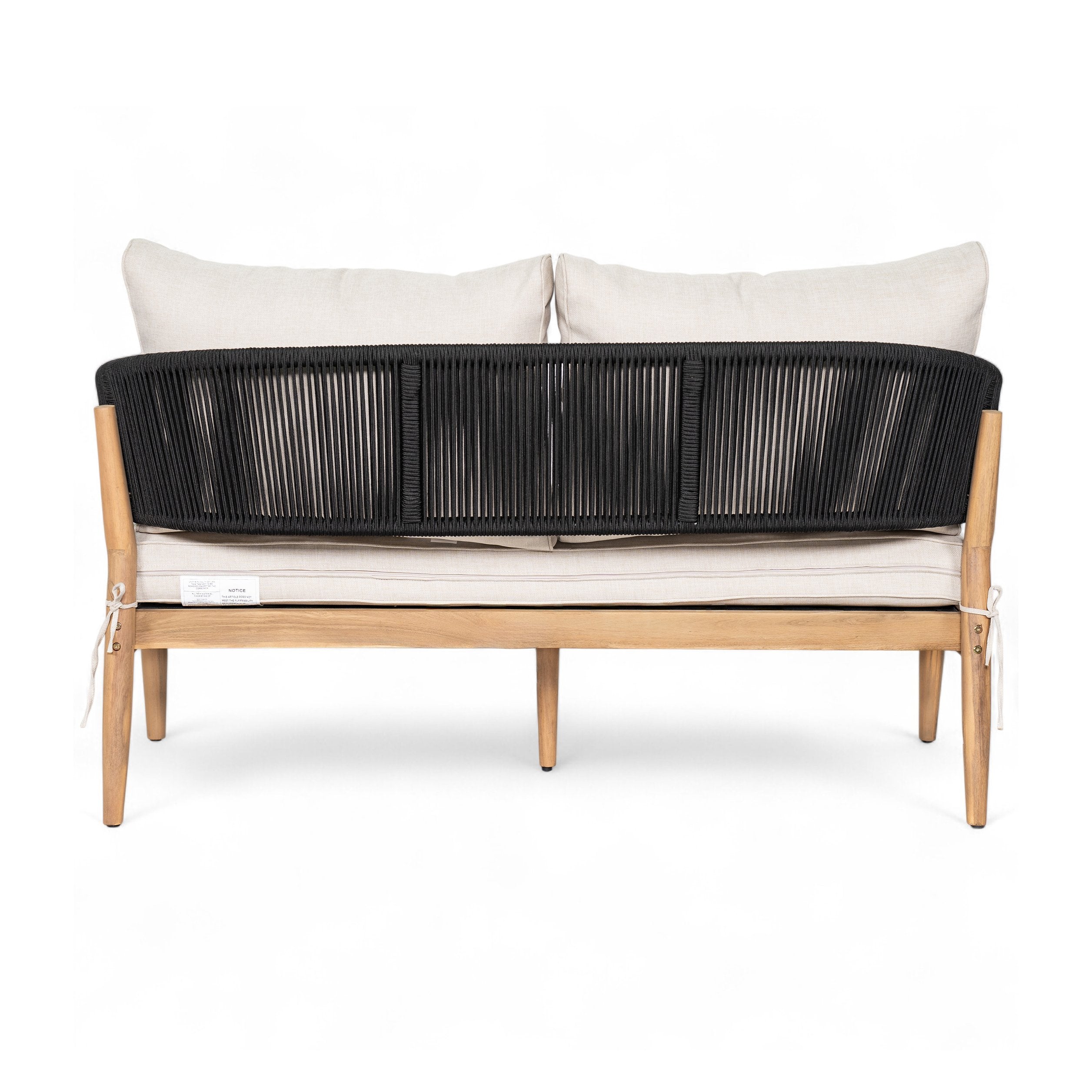 - Includes & Assembly: Includes one loveseat; some assembly required. Materials: Acacia wood, fabric cushion, metal fastenings, and rope detailing.