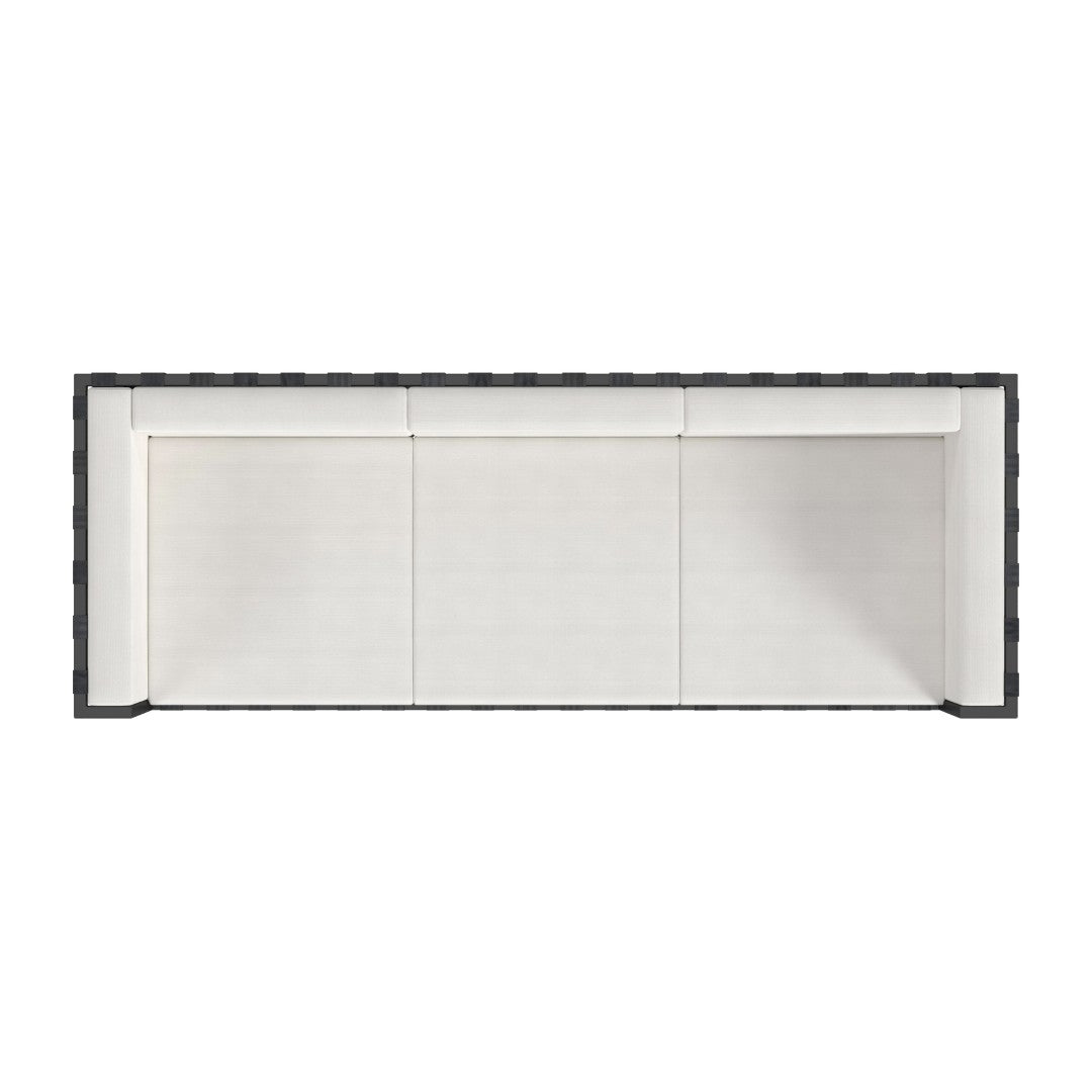 - Elegant and modern black and white outdoor sofa with comfy cushions.