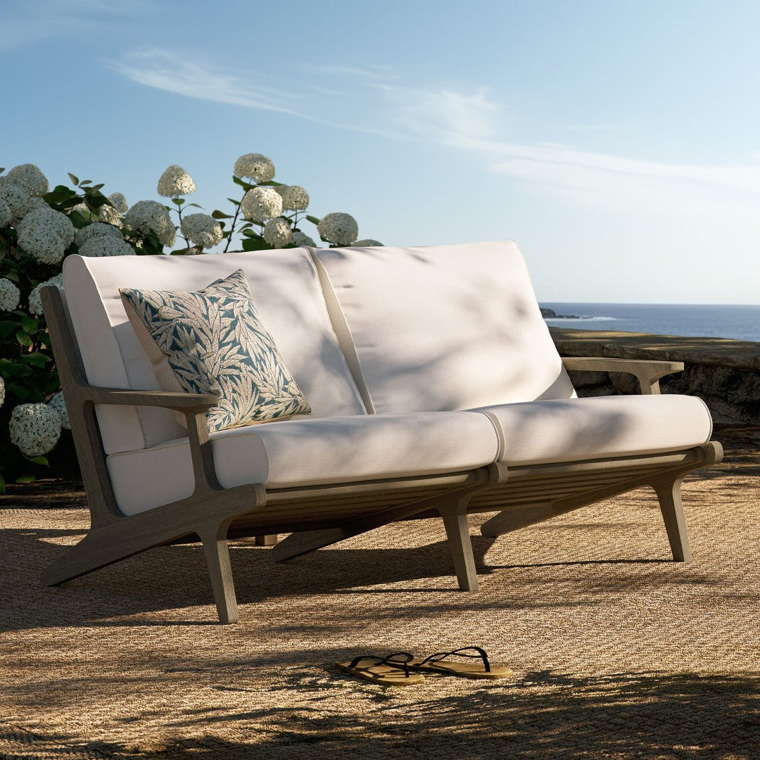 Elevate your outdoor living area with this beautifully crafted two-seater teak loveseat that combines modern lines with timeless durability. Its sculpted angular frame and slatted seat foundation offer both visual appeal and reliable support, while plush, weather-resistant cushions provide comfortable seating season after season. Ideal for patios, porches, and garden lounges, this loveseat is engineered for easy maintenance and lasting performance.