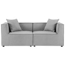 - Outdoor Patio Loveseat All-Weather Cushions Water and UV-Resistant Upholstery Aluminum Metal Frame Non-Marking Foot Caps Weight Capacity: 600 lbs.