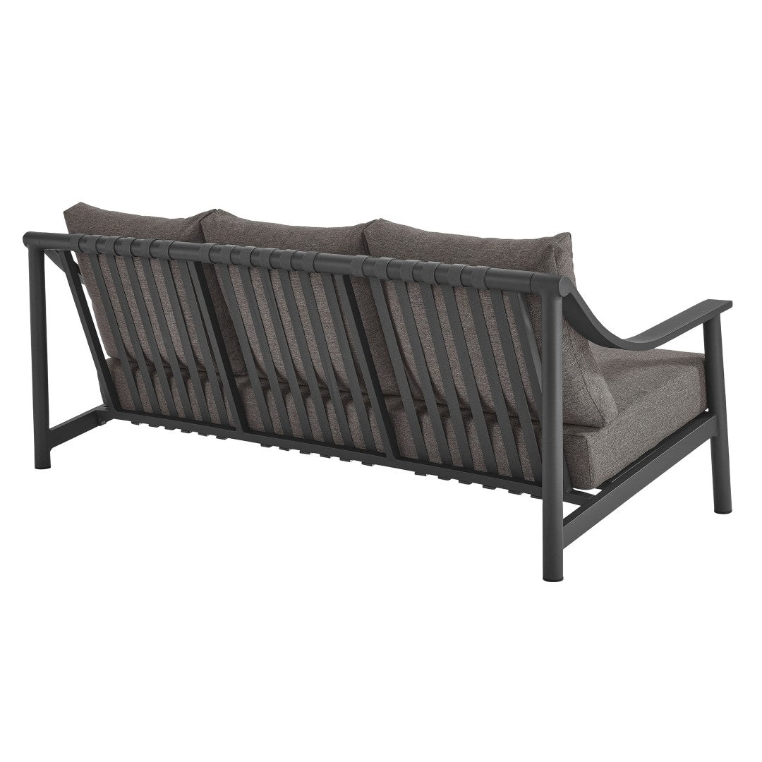 Create a welcoming outdoor lounge area with this modern, durable three-seat patio sofa. Combining clean contemporary lines with weather-resistant construction, it delivers comfortable seating and low-maintenance practicality for patios, decks, balconies, and porches. Removable, zippered cushions and protective foot glides make upkeep simple, while the powder-coated aluminum frame resists the elements for season-after-season enjoyment.
