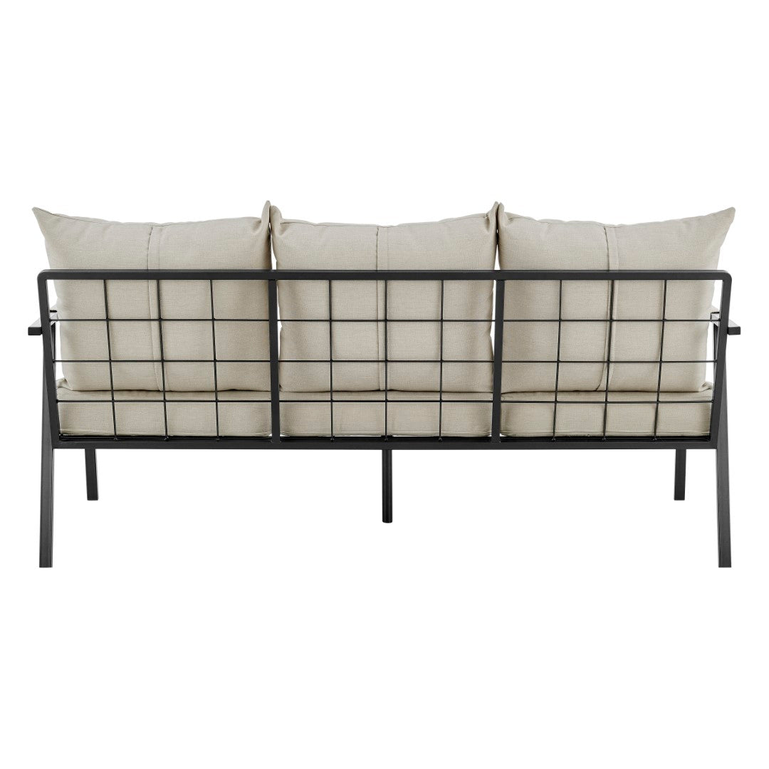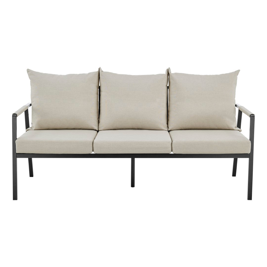 - Feature 1: Suitable for indoor-outdoor living, this 67" width sofa features rust-proof and weather protected materials by incorporating quality powder coated steel frame and UV-resistant fabric. Matching sofa and coffee table are sold separately.