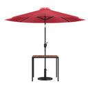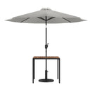 - 3 Piece Faux Teak Patio Table and 9FT Umbrella Set suitable for residential or commercial settings