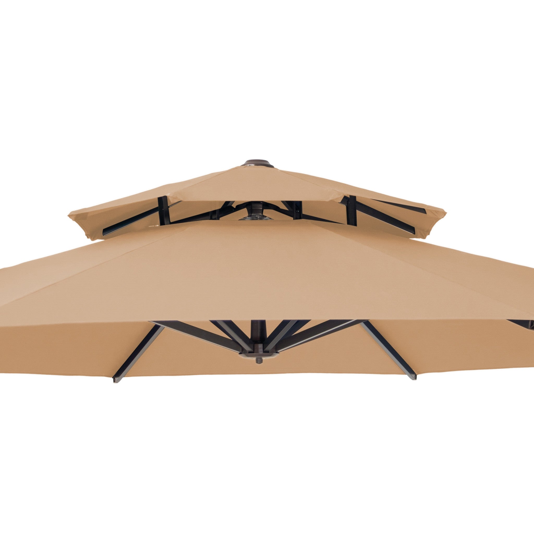 - This tilting umbrella has an adjustable pole to allow leaning at different angles to block the sun.
