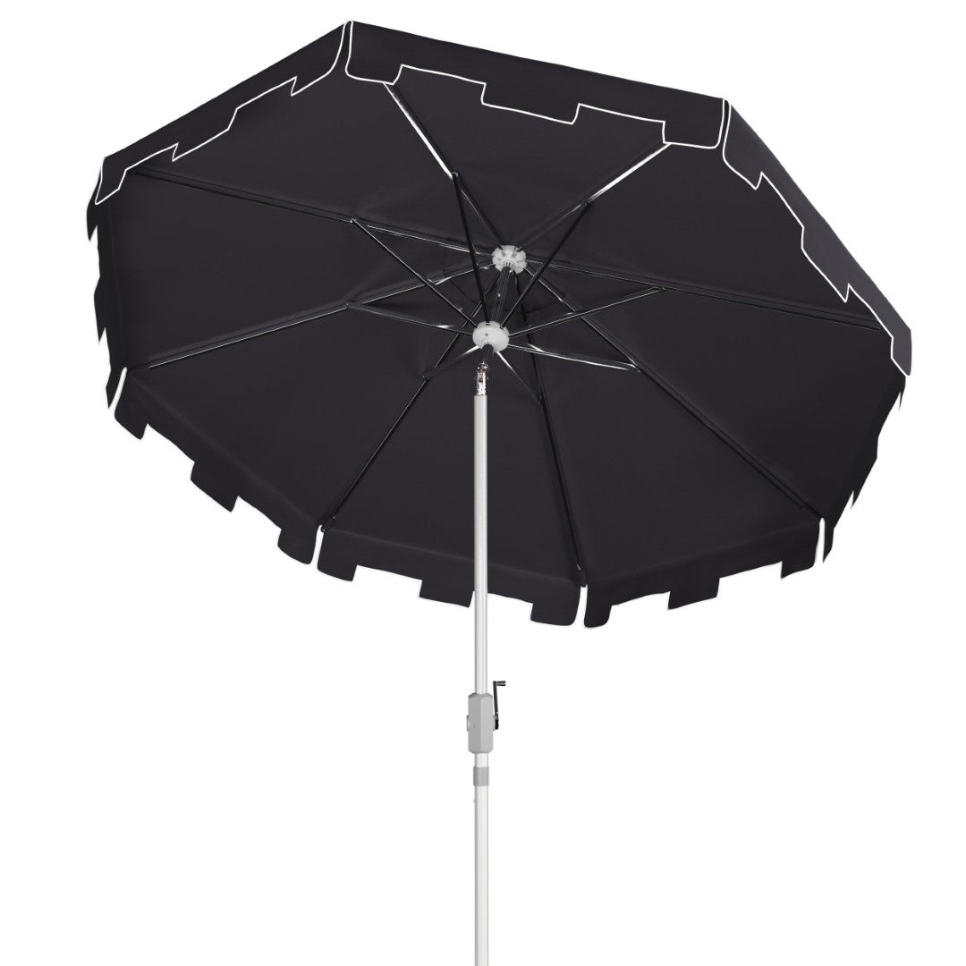 Give your outdoor seating area an instant style upgrade with this chic 9-foot market umbrella. Combining classic market umbrella proportions with modern black-and-white fabric, a decorative valance, and a sleek chrome pole, it delivers both sun protection and European-inspired flair. Built for durability and ease, it’s perfect for patios, verandas, pool decks, or any alfresco dining space.