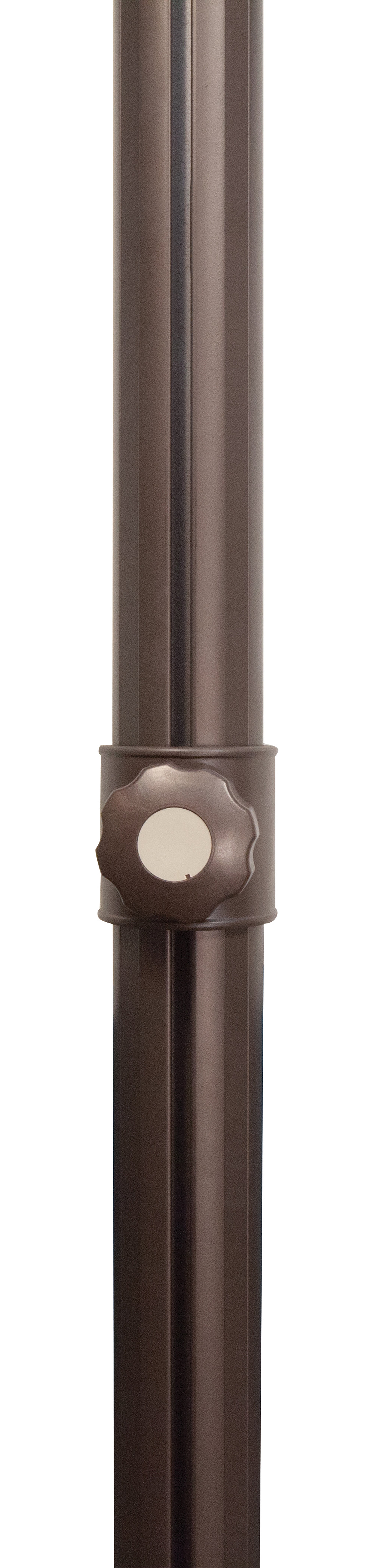 - ? Powder Coated Aluminum ? Convenient foot pedal to easily rotate canopy ? A full 360-degree rotation ? Large knob allows for infinite tilt ? Built-in Light Adapter to fit SimplyShade umbrella lights