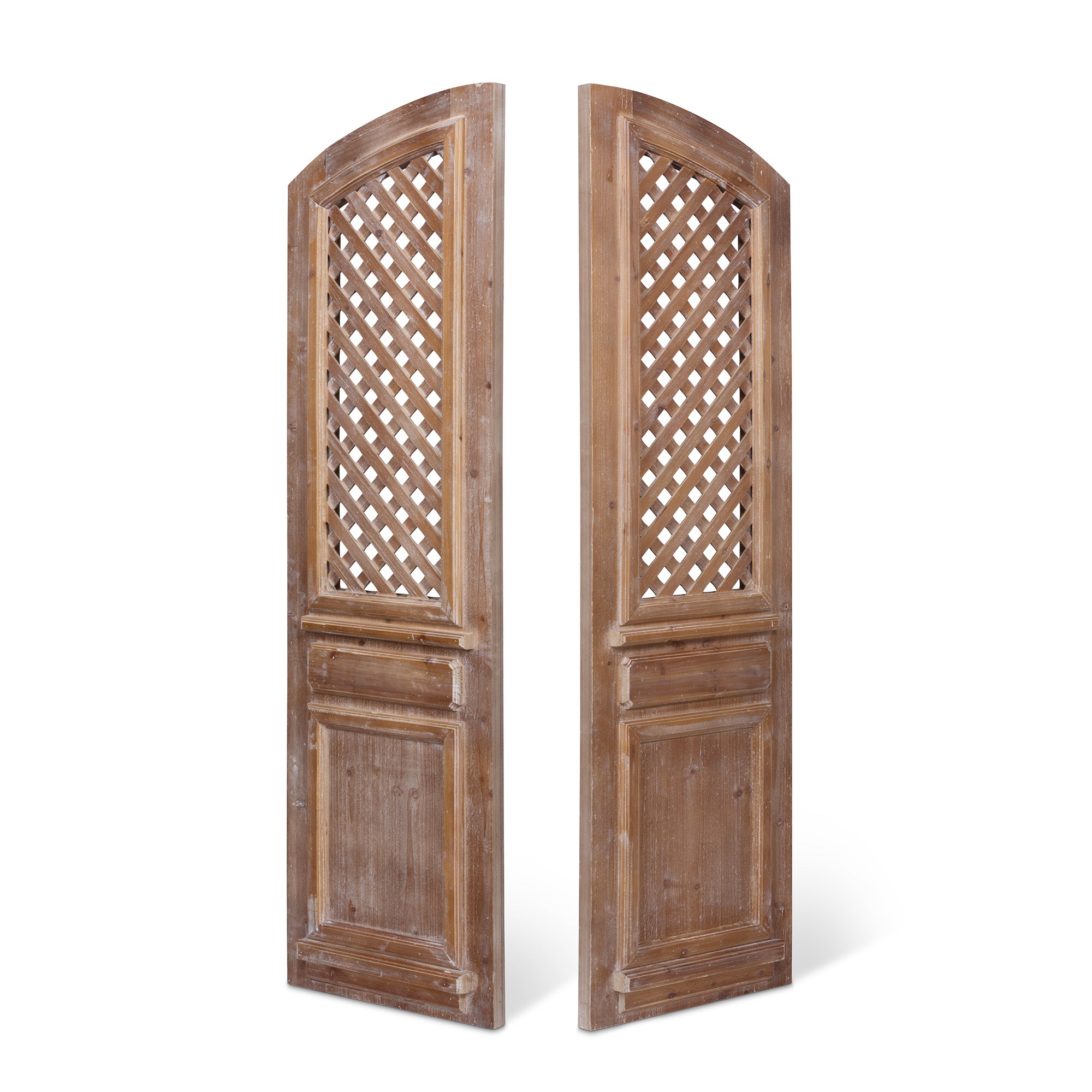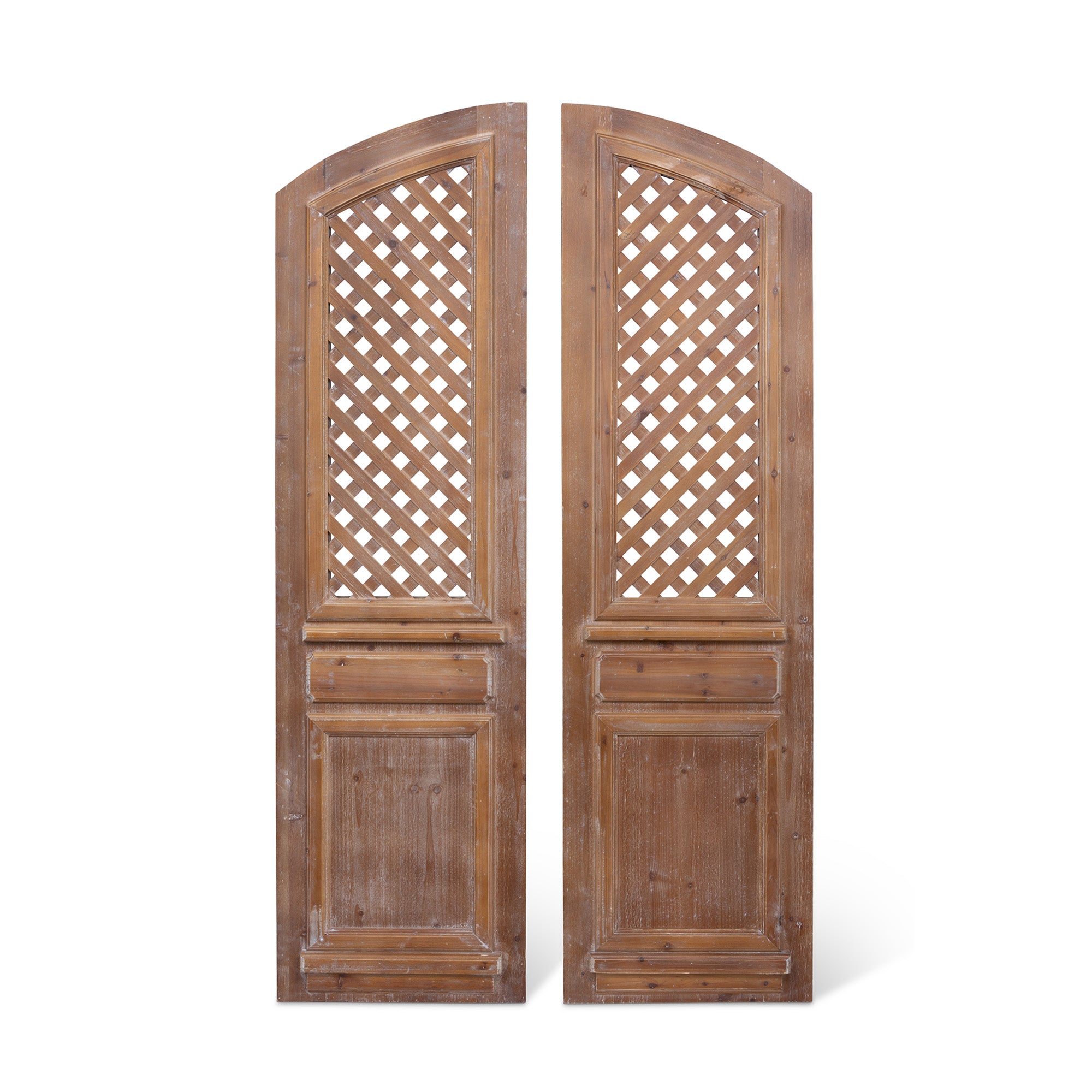 With their rich texture and beautiful lattice work pattern, this set of 2 arched wood panels have a lovely white washed finish. These panels will add that special touch to any decor.