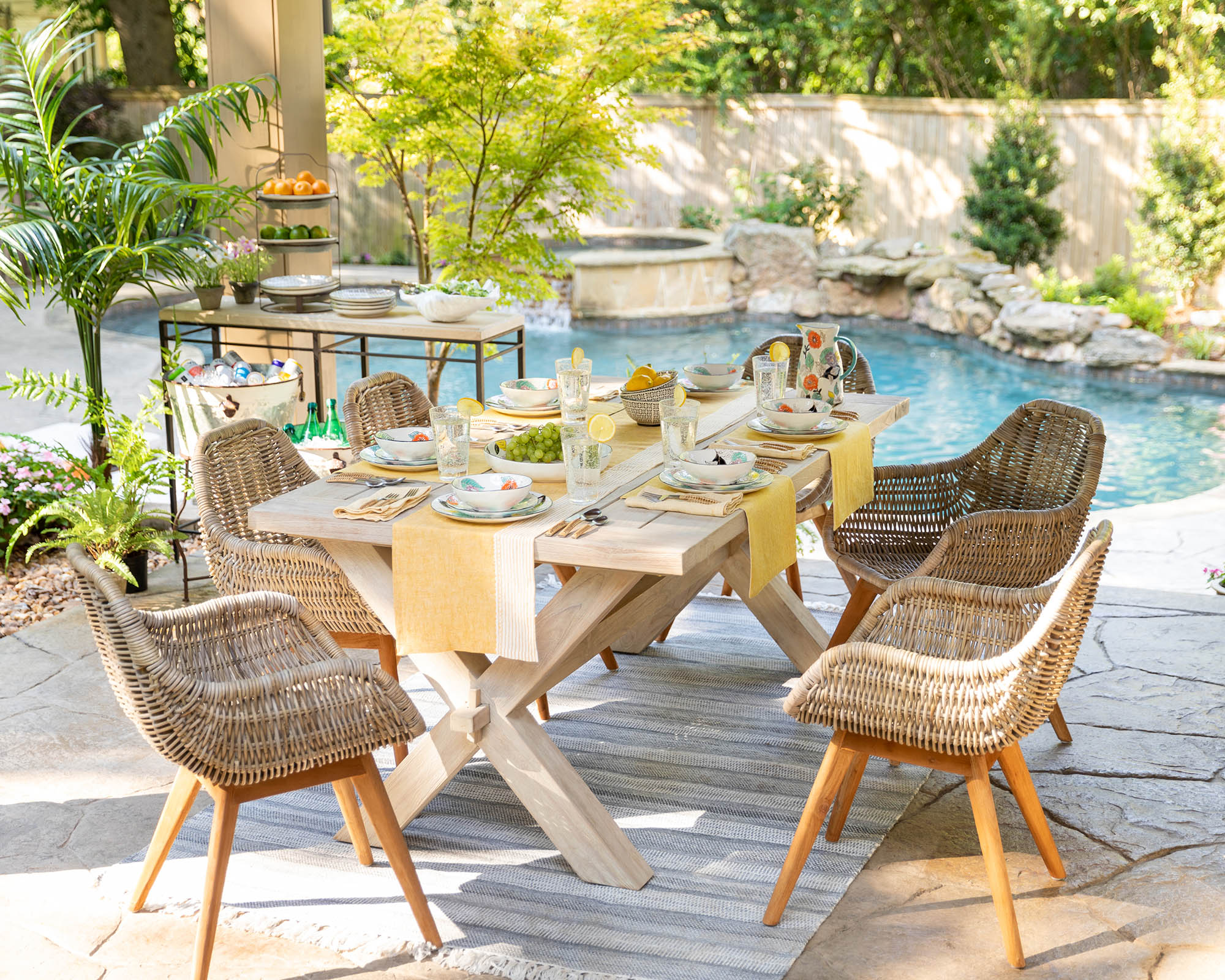 - Color: Made of rattan and wood