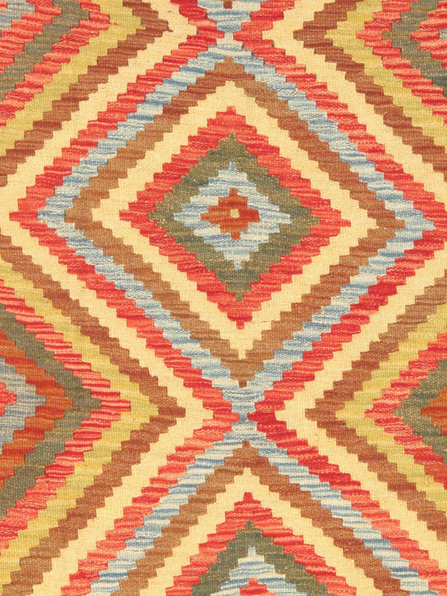 Amazing Turkish Vintage Anatolian Kilim with unique pattern! truly one-of-a-kind. This flat-weave kilim rug is masterfully hand-woven of top quality wool for enduring beauty. A colorful and visionary way for a unique metamorphosis of style, color and texture. This collection complements any room looking for a fresh update. The unique trait about these thin rugs is that they're reversible.