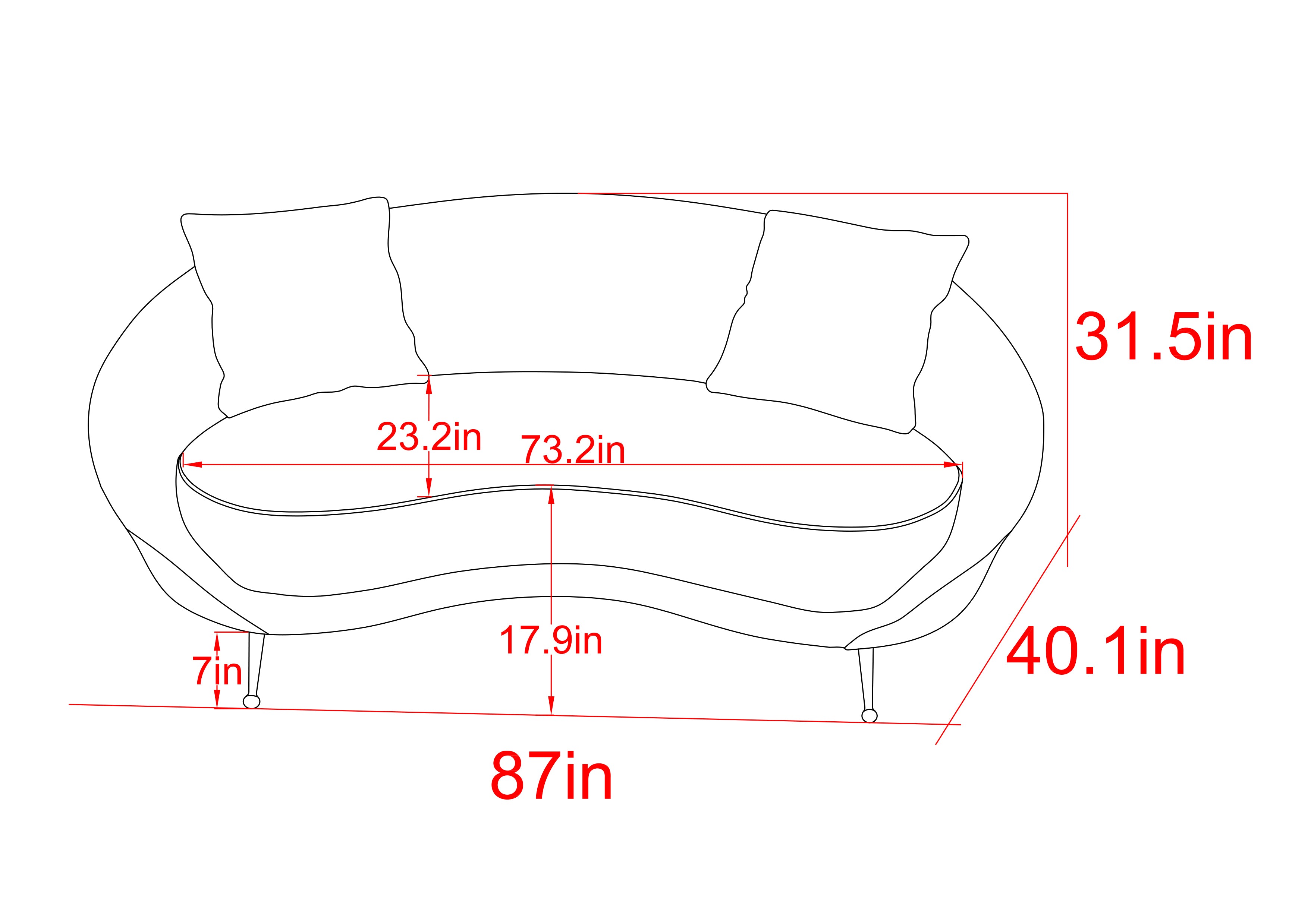 - Feature 2: Curved Sofa assembled size W87x D 40 x H 31.5" Seat H17.9" Seat Width 73.2"