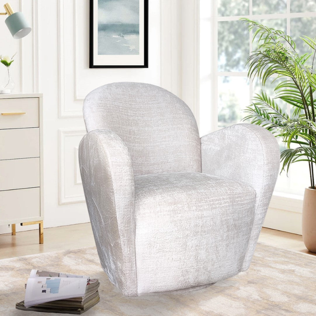 Bring a dash of glamour to you room with our Maxim chair. This transitional, swivel chair offers a sophisticated design and color suitable to any room. The chair sits atop a swivel iron base and is upholstered in a rich, soft fabric. As comfortable as it is striking this chair is a must have for any room.