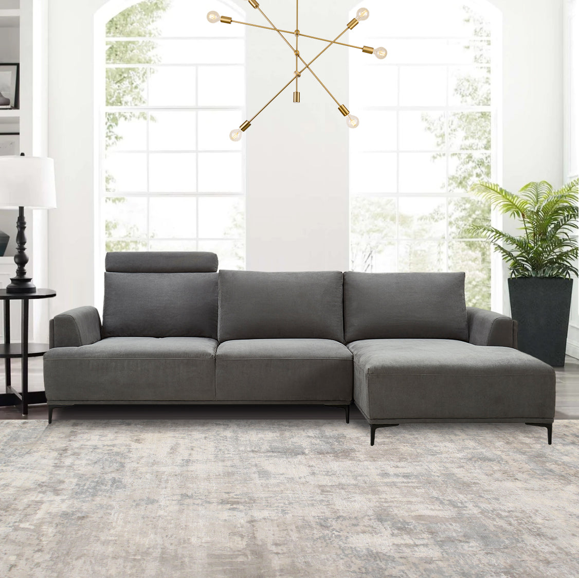 Our luxurious Contempo collection features sumptuous and comfortable faux suede. These modern sofas are made with a solid wood frame and high dense foam providing medium firmness. The sleek metal legs add to the contemporary design while the silhouette and size make it easy to incorporate into any room. It has adjustable headrests providing for maximum comfort and chaise seat options. This sofa is as versatile as it is stunning.*Curbside Delivery.