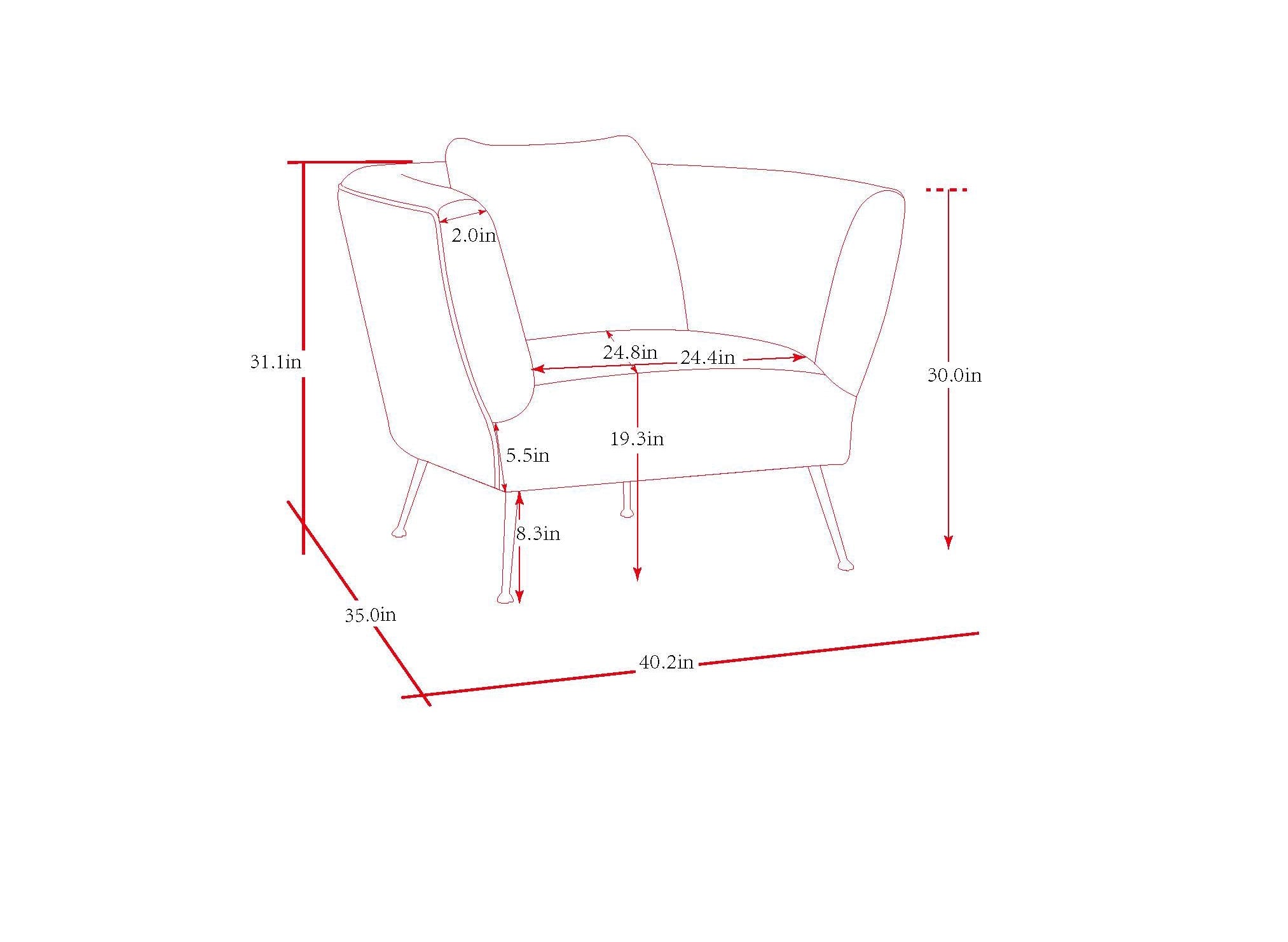 This visually stunning and comfortable accent chair features a transitional design which is sure to bring pomp and luxurious look to any room. Shaggy and snuggly, the supremely soft faux-fur pillow adds glamour and comfort to the chair. Upholstered in a textured, grey velvet with zinc alloy gold polished legs.