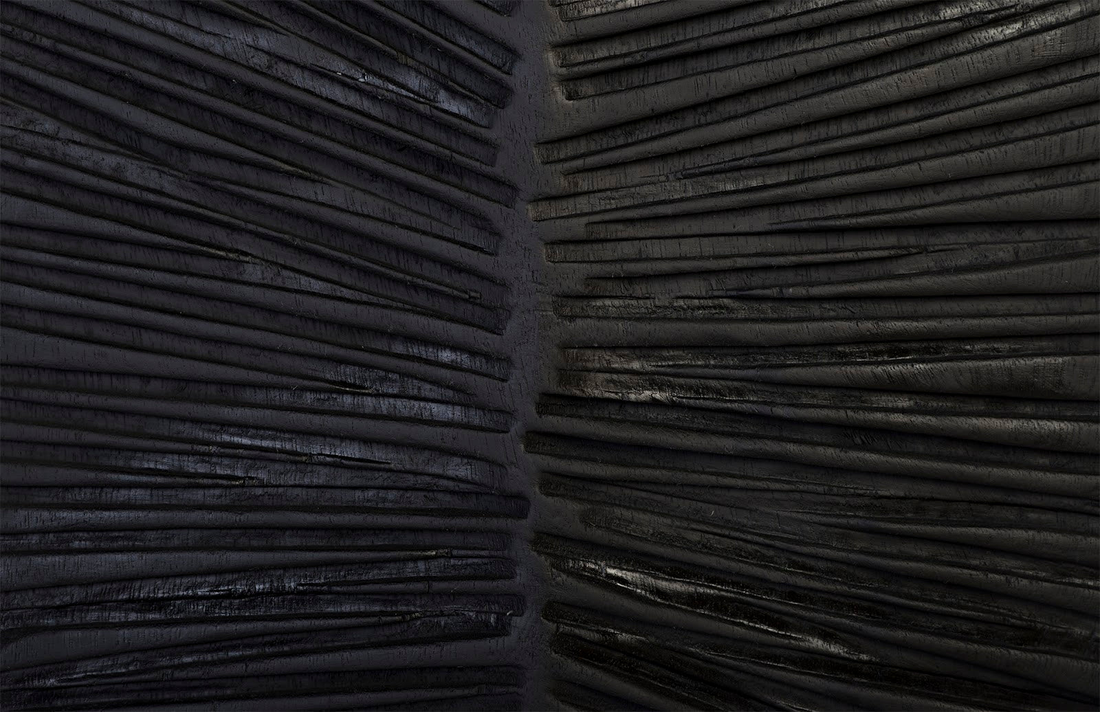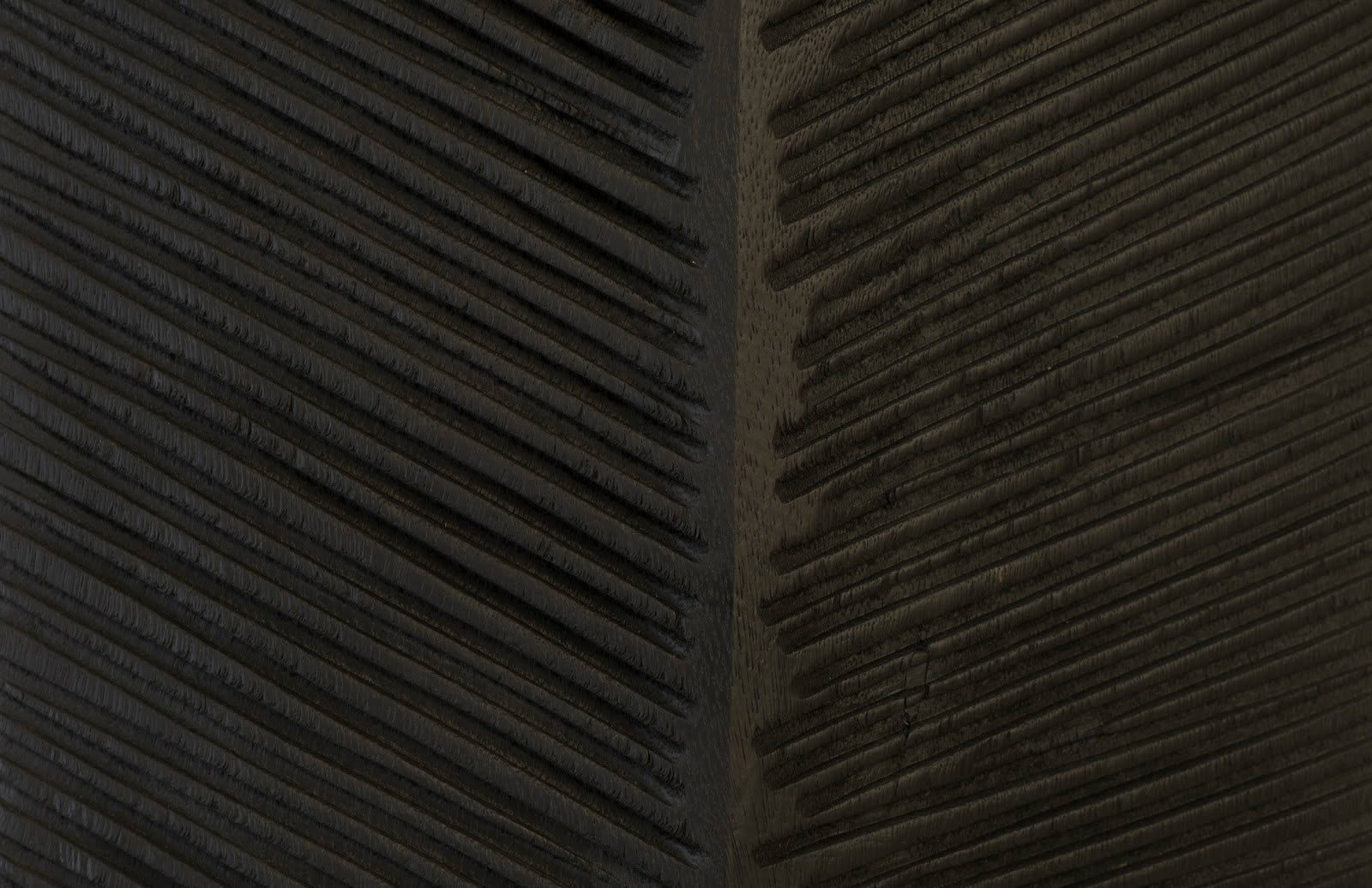 Our artisans have captured the personality of the leaf to perfection in the Large Black Carved Leaf Sculpture. This is one of a number of sizes and finishes in this family of oversized decorative accessories. Each is hand-carved from wood, some finished in copper leaf and others in a burnt black. We also offer two sizes of round leaves. Each of these exemplifies the Phillips Collection ethos of modern organic.