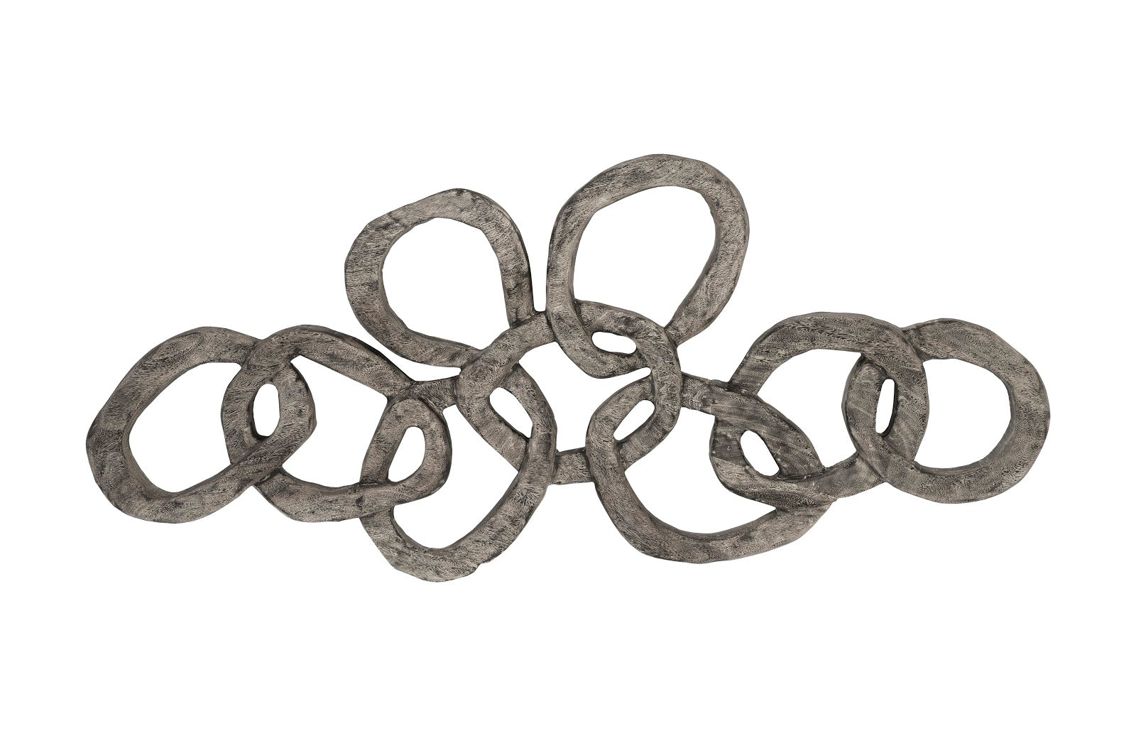 The perfect example of how we use even the smallest pieces of natural wood we source, the Chain Gray Chamcha Wood Wall Art is a sculptural piece created from rings of golden acacia wood that are sanded and treated to a gray stone finish to create an organically shaped wall panel. Though many product designers would see these small pieces of wood as useless castaways, we see them as building blocks that create dynamic elements for interiors. This wall sculpture personifies the modern organic ethos for which Phillips Collection is renowned.