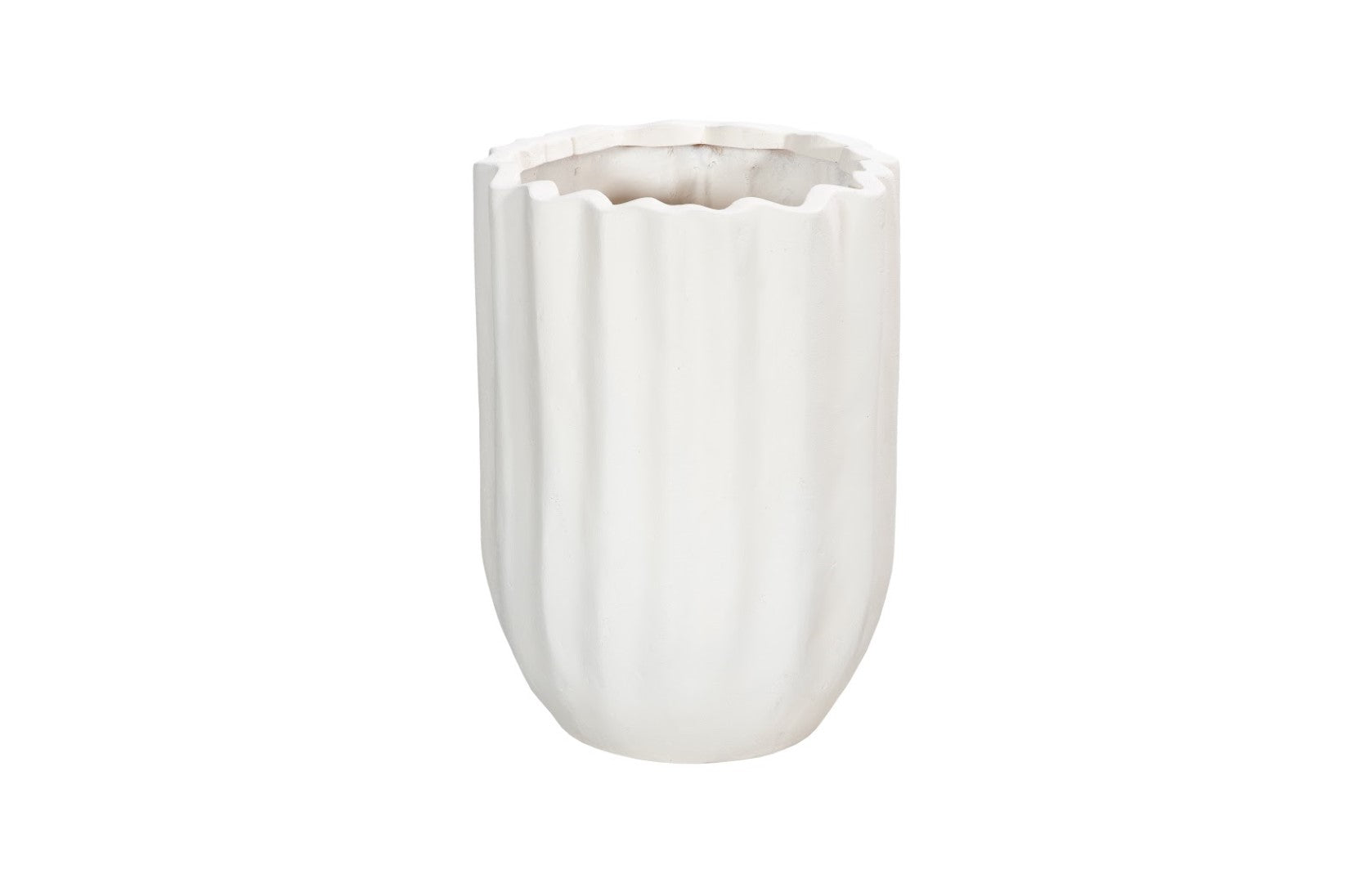 - Our Stone Cast finish is crafted using a unique blend of crushed stone and resin, backed by a durable fiberglass structure. As a result of this artisanal process, hairline cracks may naturally appear in the surface. These fine lines are an expected characteristic of the material and do not compromise the strength, stability, or structural integrity of the piece. They are not considered defects or damage. Each item reflects the handcrafted nature of the Stone Cast finish, adding to its individual charm and timeless appeal.
