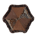 Elevate your Southwestern decor with the Rio Grande Hexagon Pillow, a striking accessory that blends traditional Western textiles with a modern geometric design. This eye-catching pillow serves as a perfect focal point in your bedroom, combining a rich tapestry of colors and textures. The centerpiece features a stunning brass concho, beautifully framed by woven tweed and vibrant Aztec-inspired patterns. The luxurious faux tooled leather adds depth, while the colorful fringed edge provides a playful touch, making it an ideal complement to your Southwestern-themed space.