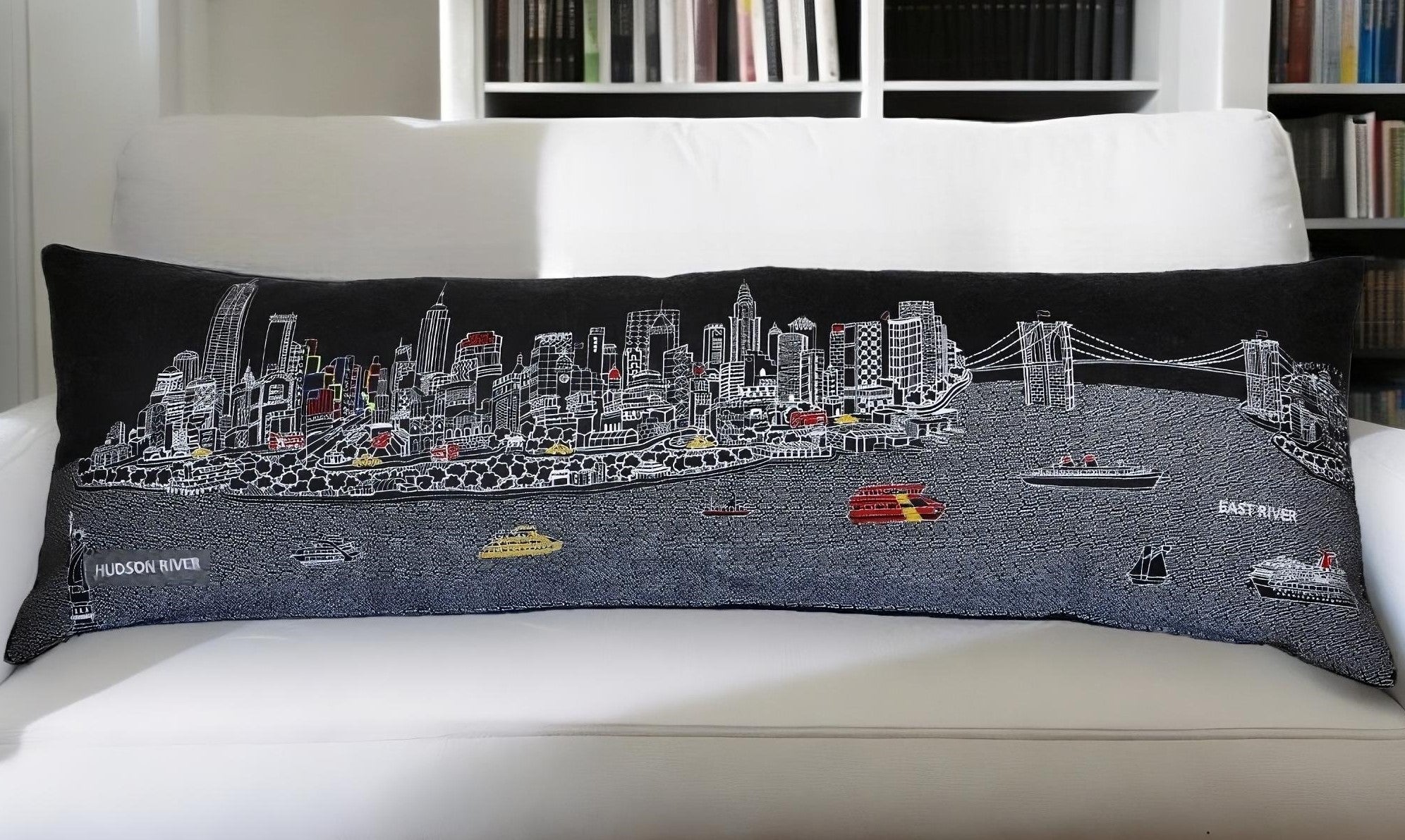 - Features an eclectic NYC New York Cityscape and skyline on front with solid color on the back.
