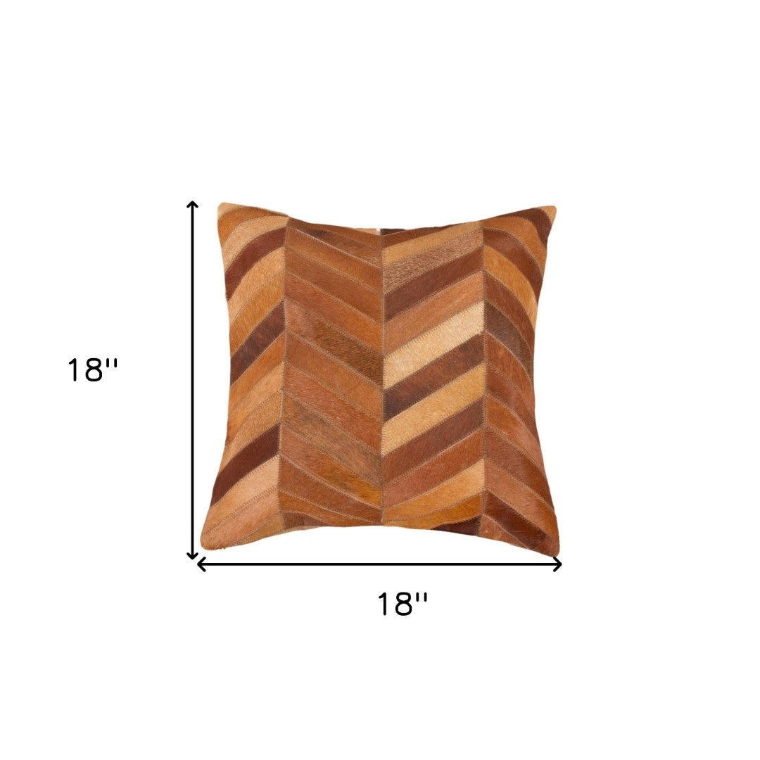 Elevate your living space with this elegant set of two tan chevron cowhide throw pillows — a refined blend of natural texture and modern pattern. Crafted from genuine cowhide with a plush polyfill insert, these pillows add warmth, dimension, and tactile interest to sofas, chairs, or bedding ensembles while retaining a tailored, luxurious appearance.