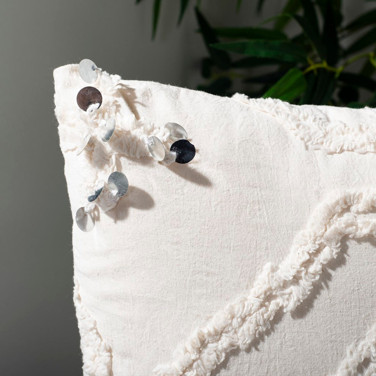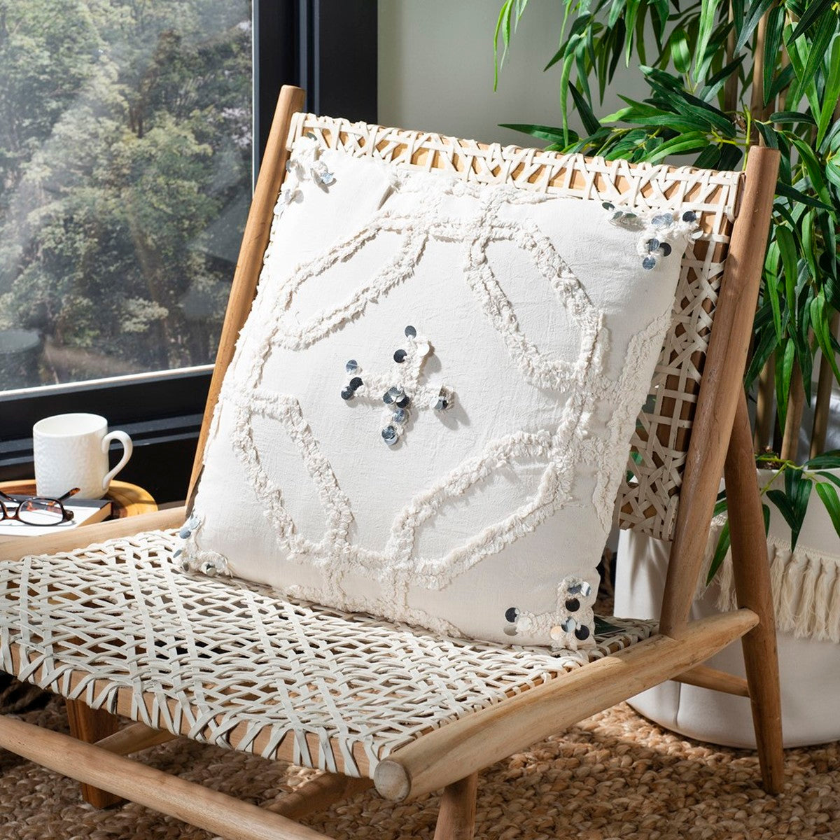 Pillows tend to flatten during transit, but these tips should help you get that pillow into its fluffiest shape quickly! Once unpacked, gently knead the pillow to help loosen the fibers. Throw the pillow in a dryer on a low tumble setting. The most important tip is to include a sock stuffed with a tennis ball to help "beat" the pillow into its fluffy form. Remove from the dryer, and proudly display your new piece of couch art!