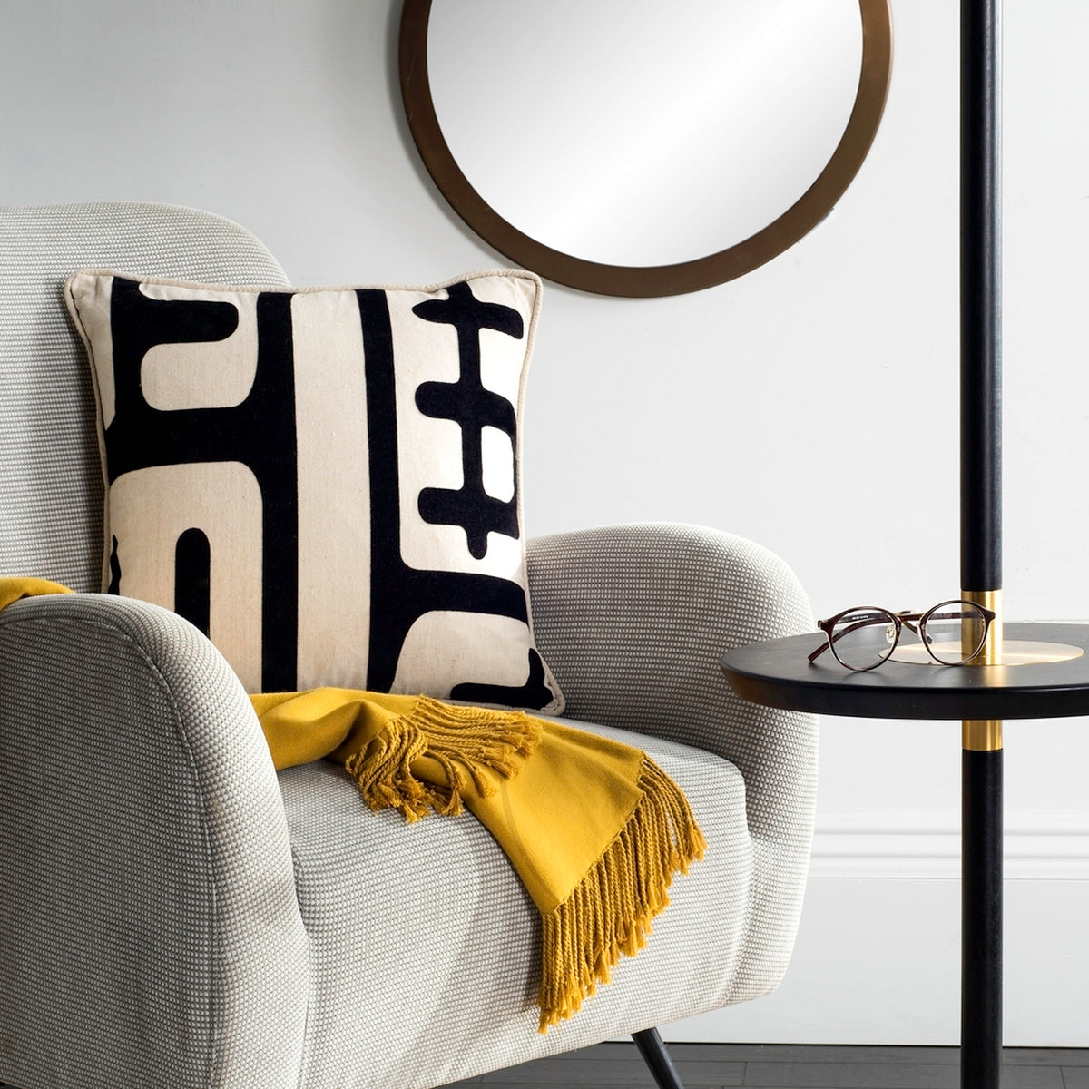 Pillows tend to flatten during transit, but these tips should help you get that pillow into its fluffiest shape quickly! Once unpacked, gently knead the pillow to help loosen the fibers. Throw the pillow in a dryer on a low tumble setting. The most important tip is to include a sock stuffed with a tennis ball to help "beat" the pillow into its fluffy form. Remove from the dryer, and proudly display your new piece of couch art!