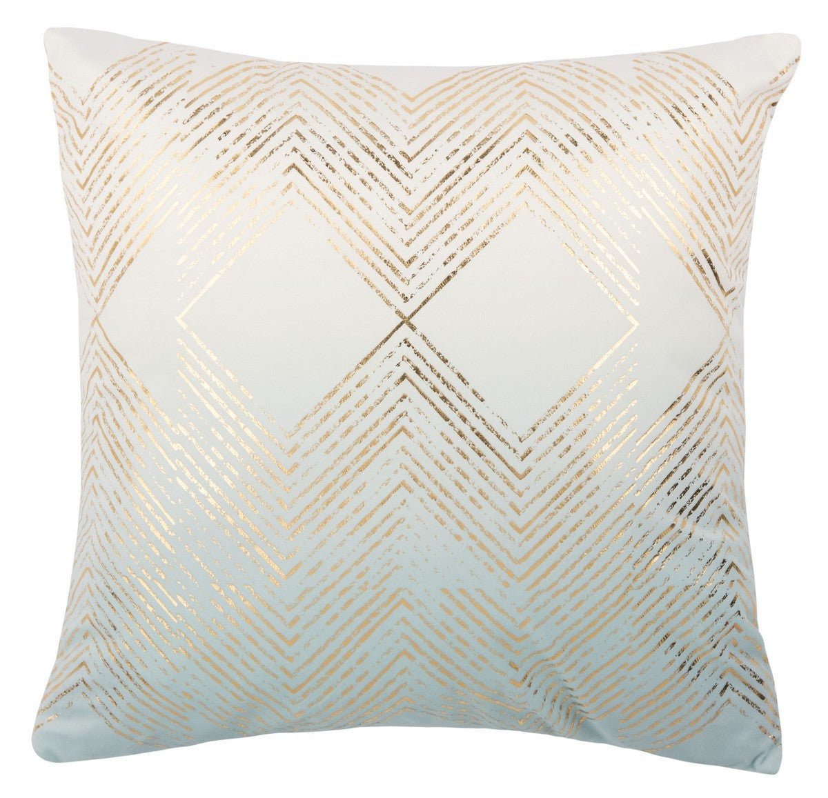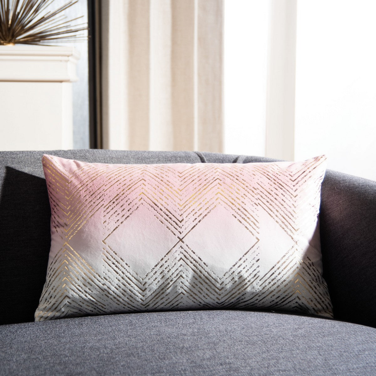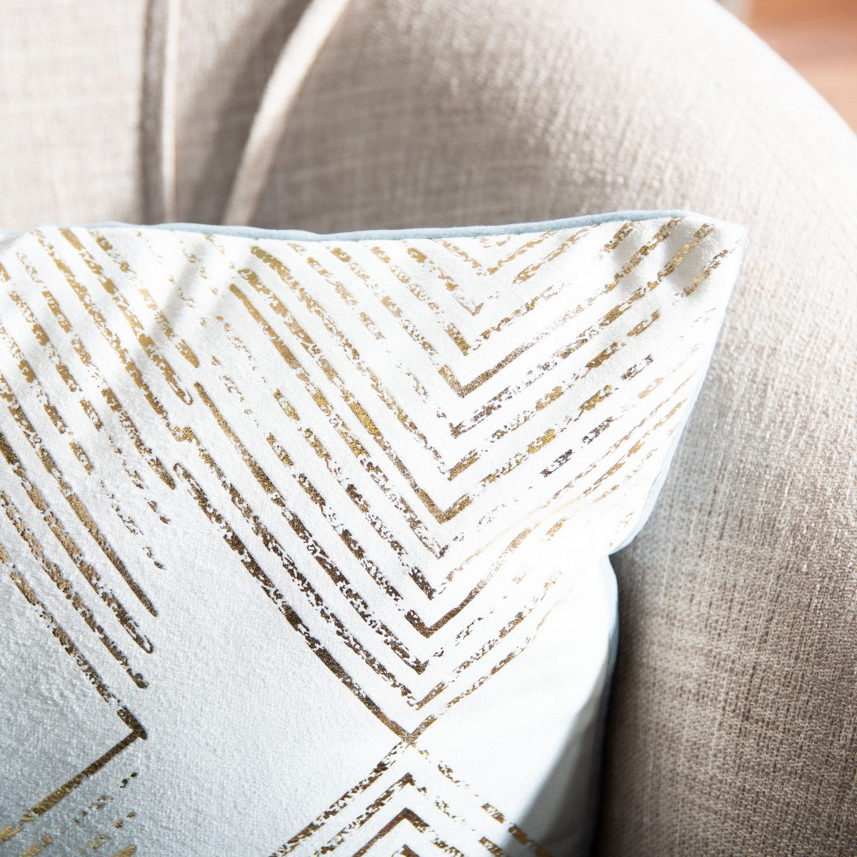 Pillows tend to flatten during transit, but these tips should help you get that pillow into its fluffiest shape quickly! Once unpacked, gently knead the pillow to help loosen the fibers. Throw the pillow in a dryer on a low tumble setting. The most important tip is to include a sock stuffed with a tennis ball to help "beat" the pillow into its fluffy form. Remove from the dryer, and proudly display your new piece of couch art!