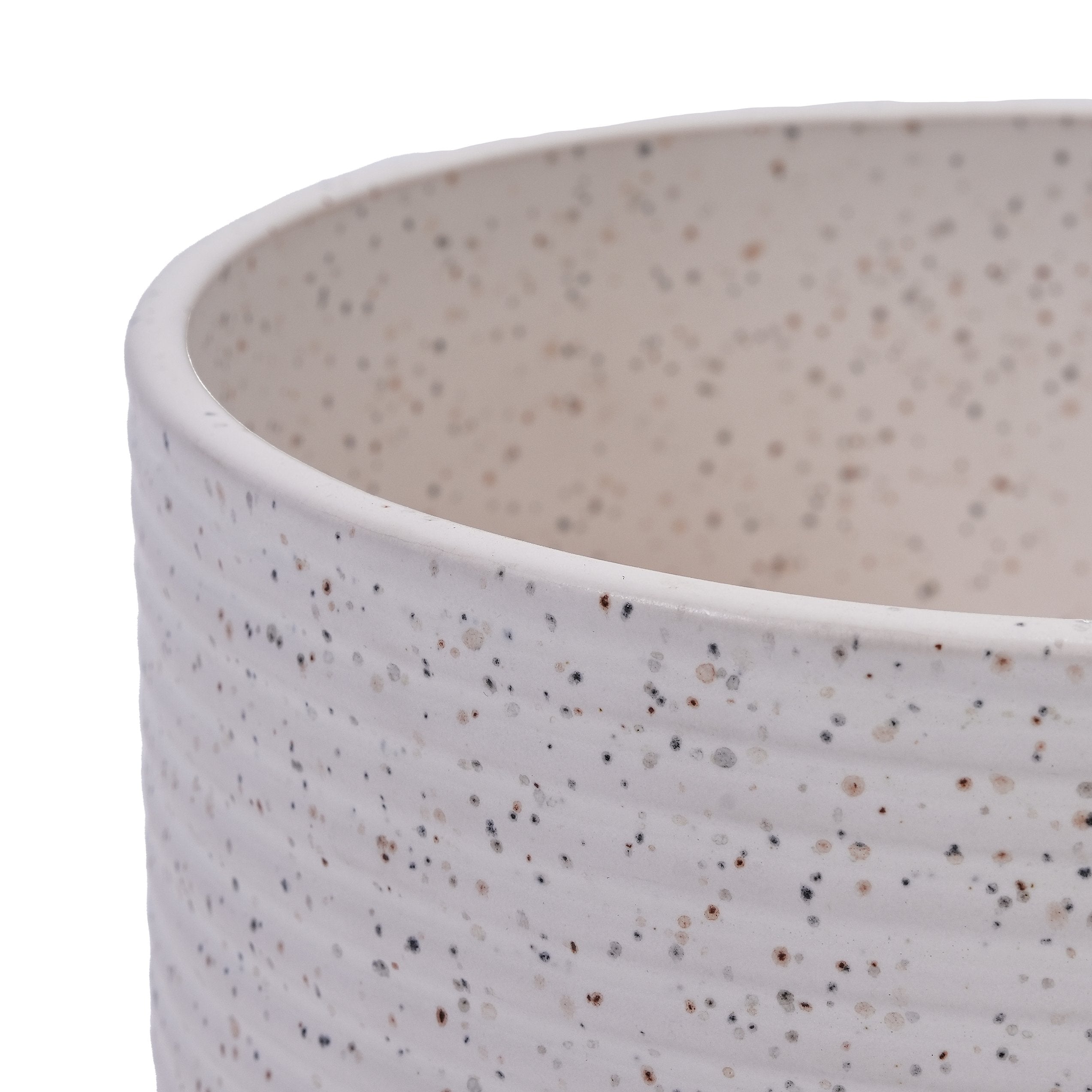 - Our 2 Pieces Ceramic Flowerpot, a modern and versatile planter, is designed to beautifully display your plants both indoors and out. Crafted from high-quality, reinforced ceramic with a chic milk white finish, it boasts a unique ribbed texture and subtle speckled design.