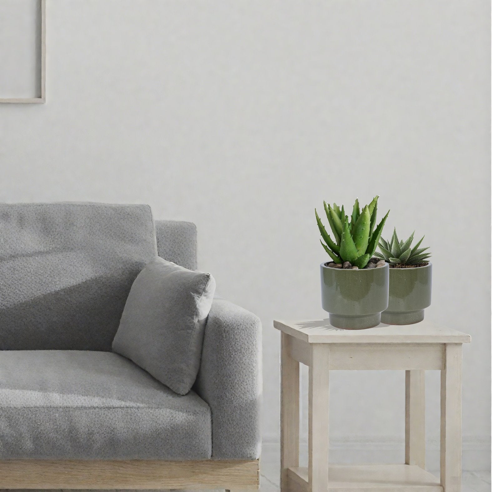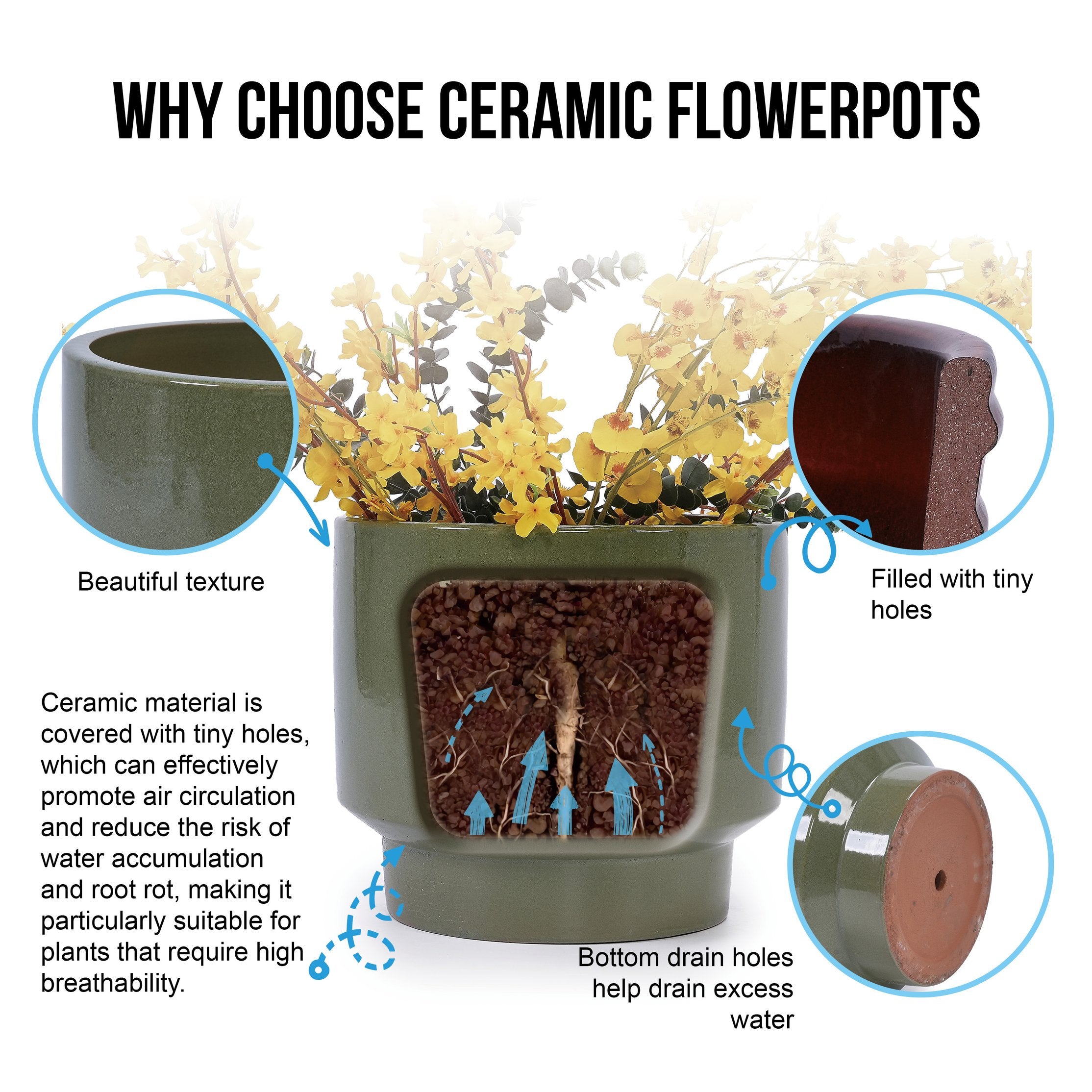 - Add a touch of modern elegance to your home or garden with this stylish ceramic flowerpot. Featuring a glossy antique light green finish, it blends effortlessly with both contemporary and traditional décor. Crafted from durable, high-quality ceramic, its built to withstand the elements - perfect for both indoor and outdoor use.