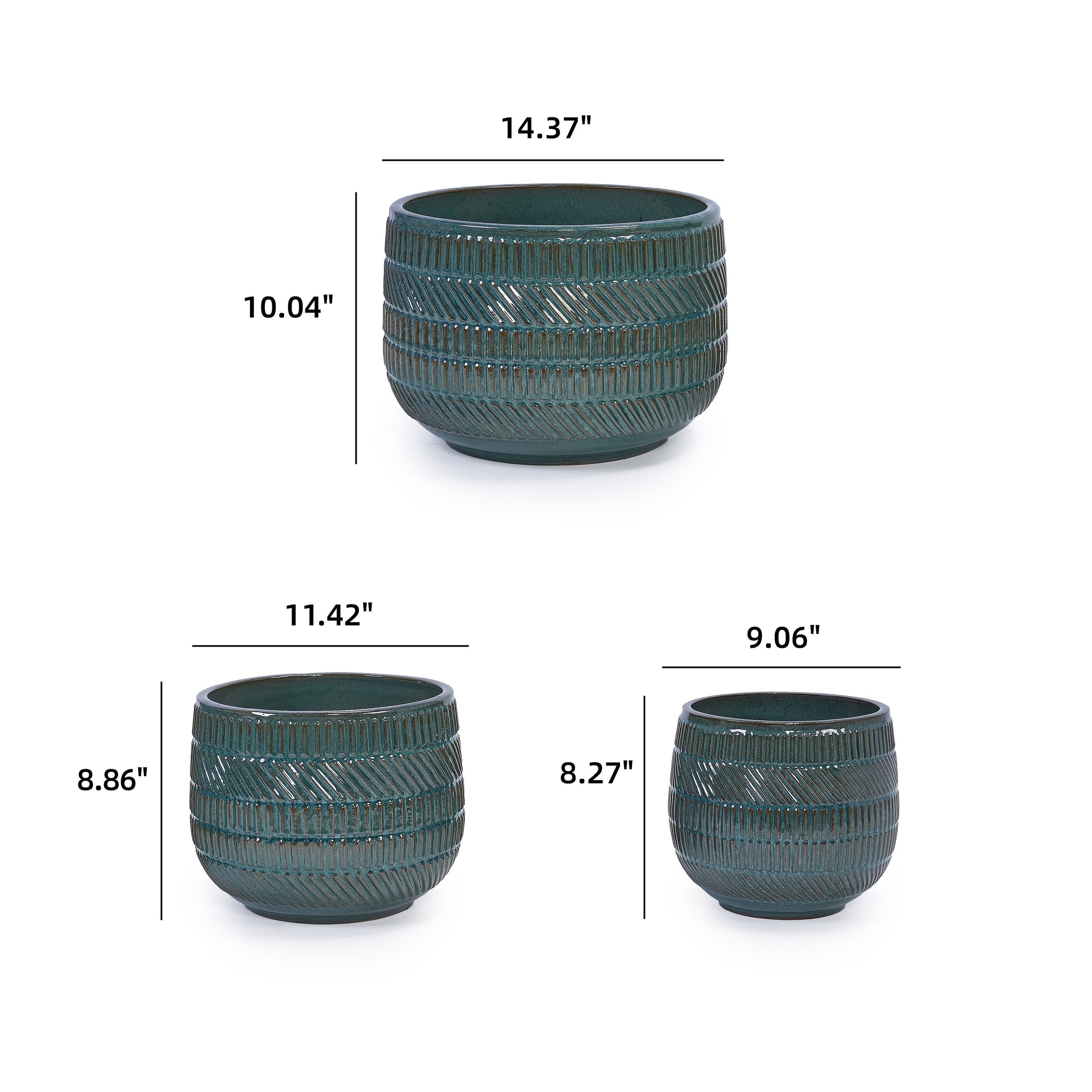 Bring handcrafted elegance to your patio, garden, or windowsill with these three antique navy blue ceramic planters. Each piece is meticulously crafted using traditional carving and mold-making techniques, then hand-glazed and kiln-fired to achieve rich color, durable finish, and consistent form—ideal for showcasing small shrubs, herbs, or floral arrangements.