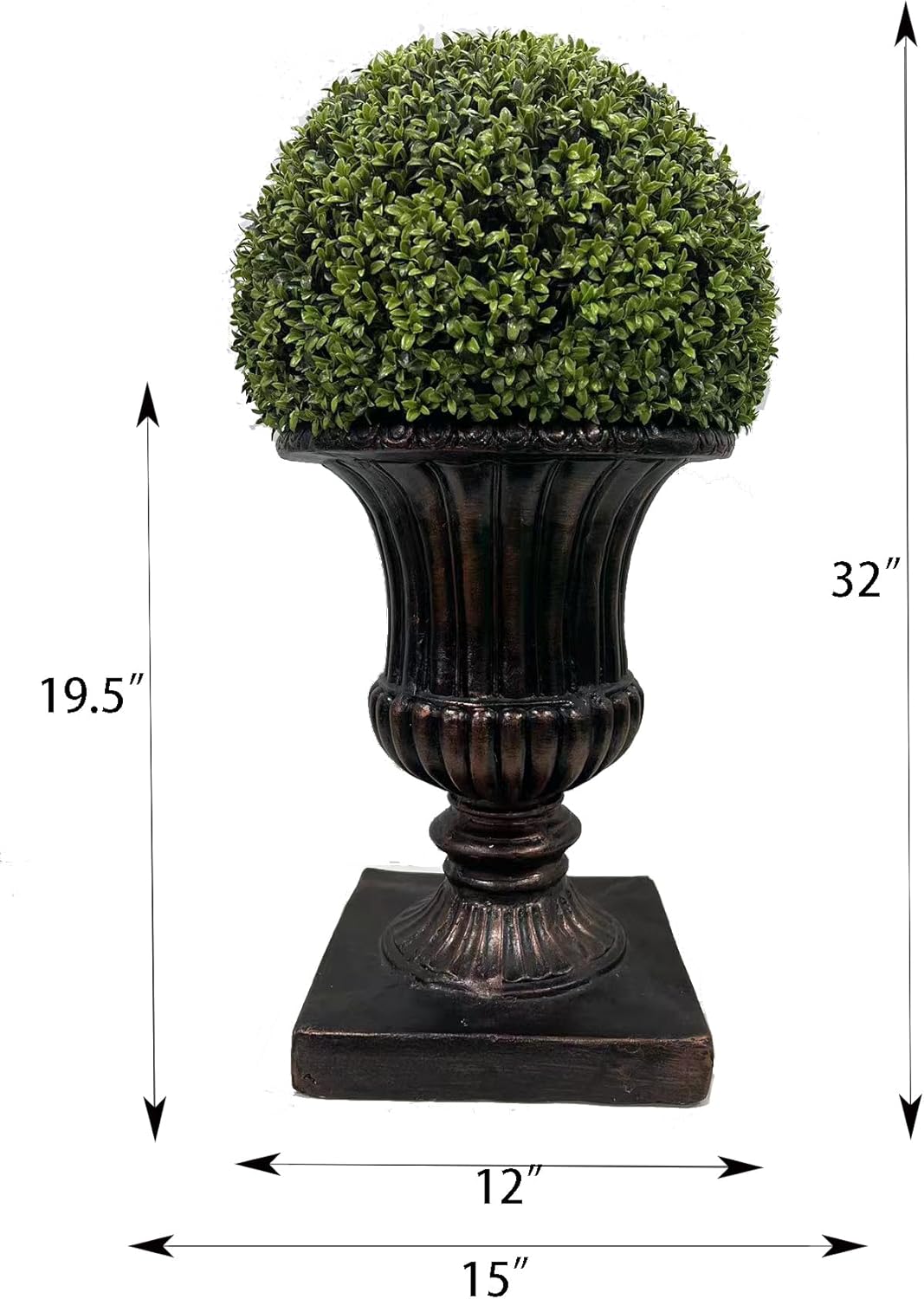 Bring timeless greenery to any space with this elegant 32-inch ball topiary in a brown magnesia pedestal pot. Carefully crafted to mimic the look of a freshly pruned living topiary, this faux plant delivers the visual impact of natural foliage without the upkeep. Ideal for entryways, living rooms, patios, or commercial settings, it provides a sophisticated focal point that stays vibrant year-round.