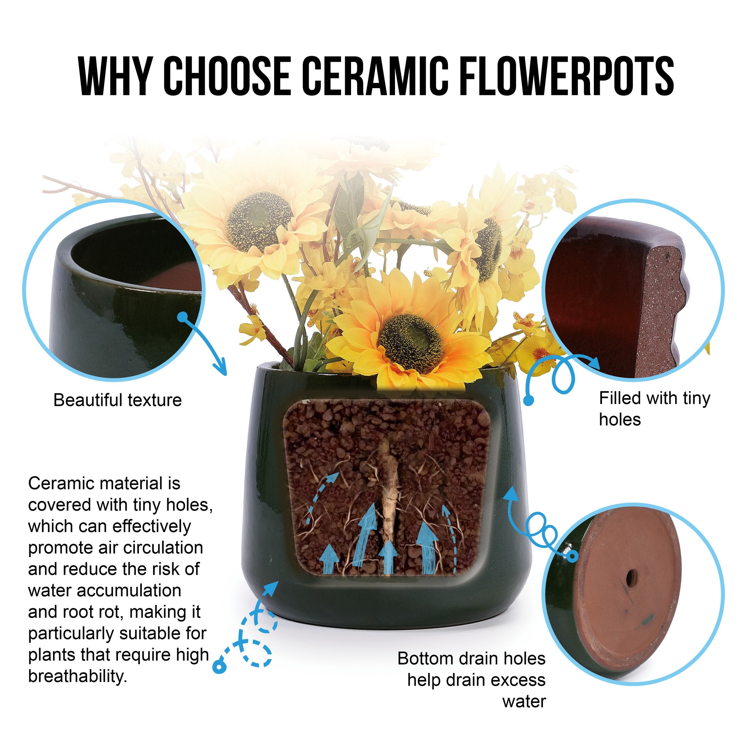 - Set of 4 ceramic flowerpots—consistent size and finish across the group for cohesive styling