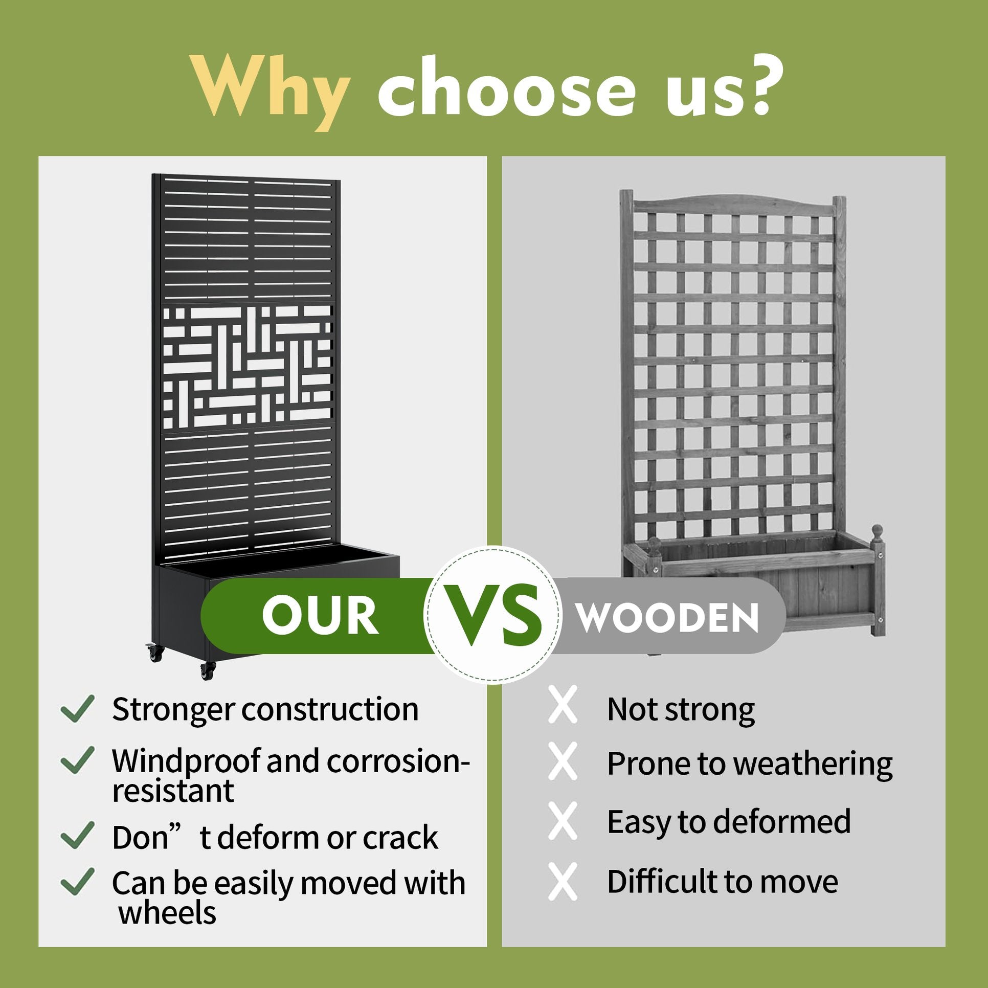 - Versatile Design - This metal planter with trellis serves three purposes: it can be used as a raised bed for flowers/plants, a sturdy trellis for climbing plants, and a stylish privacy barrier to enhance your outdoor living space. Its flexible structure makes it the ultimate gardening solution for a variety of needs.