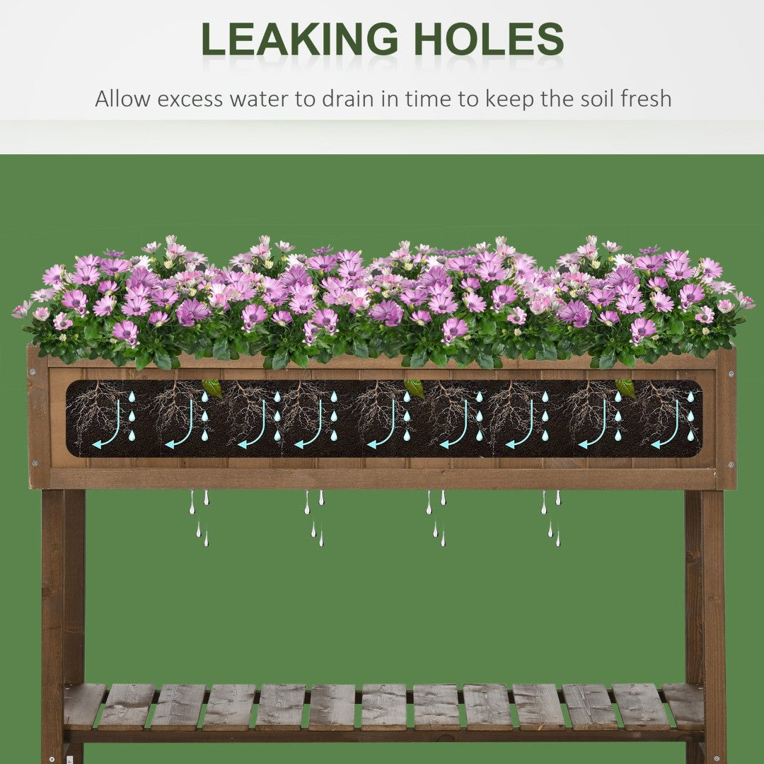 Create a tidy, accessible planting station for herbs, vegetables, and flowers with this elevated wooden planter. Designed to reduce bending and keep plants protected from ground pests, it combines organized planting space with a convenient lower shelf for tools and supplies. The dark brown finish and fir wood construction make it both attractive and suitable for outdoor use with basic maintenance.